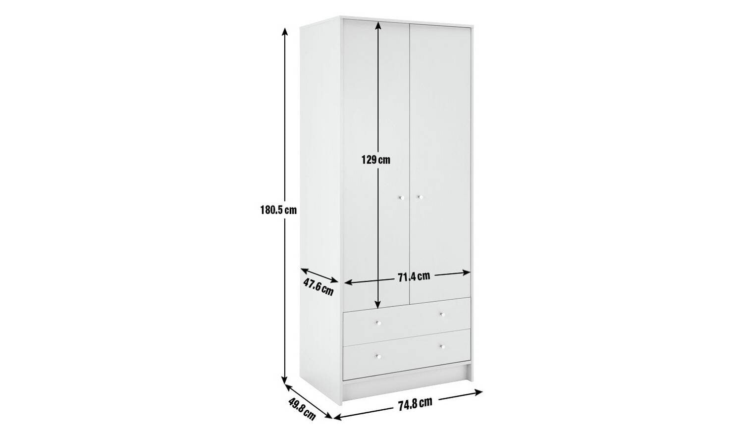 Malibu 2 Door 2 Drawer Wardrobe - Grey