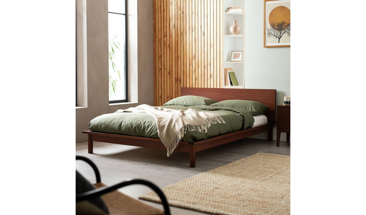 Akio Small Double Wooden Platform Bed Frame Walnut Bedroom Furniture