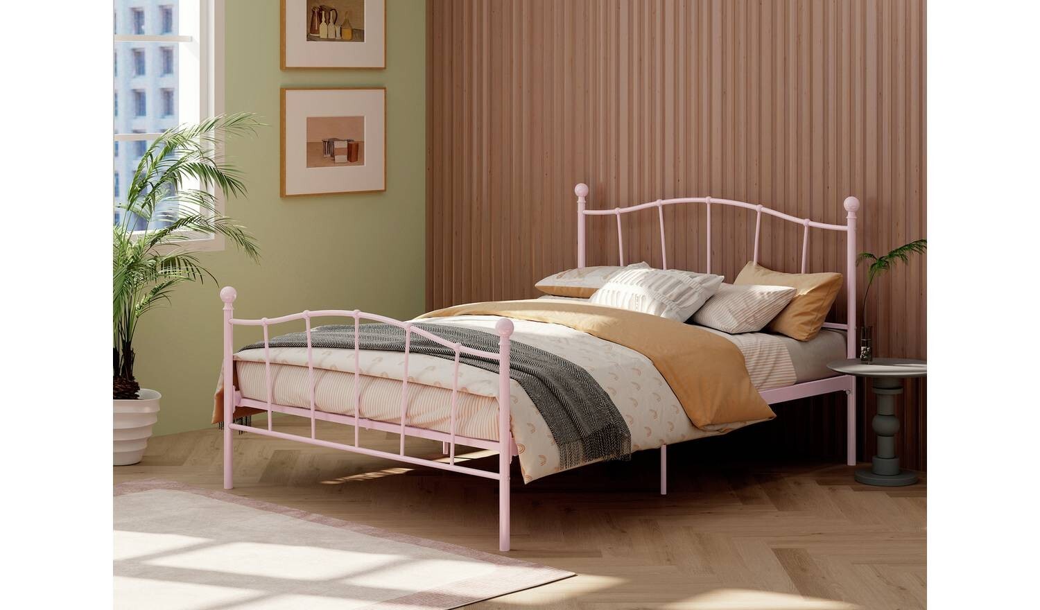 Fleur Double Metal Bed Frame Pink Modern Bedroom Furniture Girls