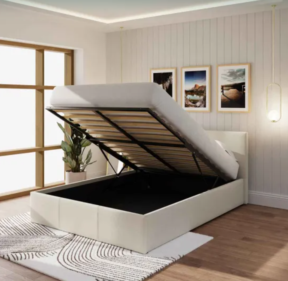 GFW End Lift Small Double Ottoman Natural Fabric Bed Storage UK