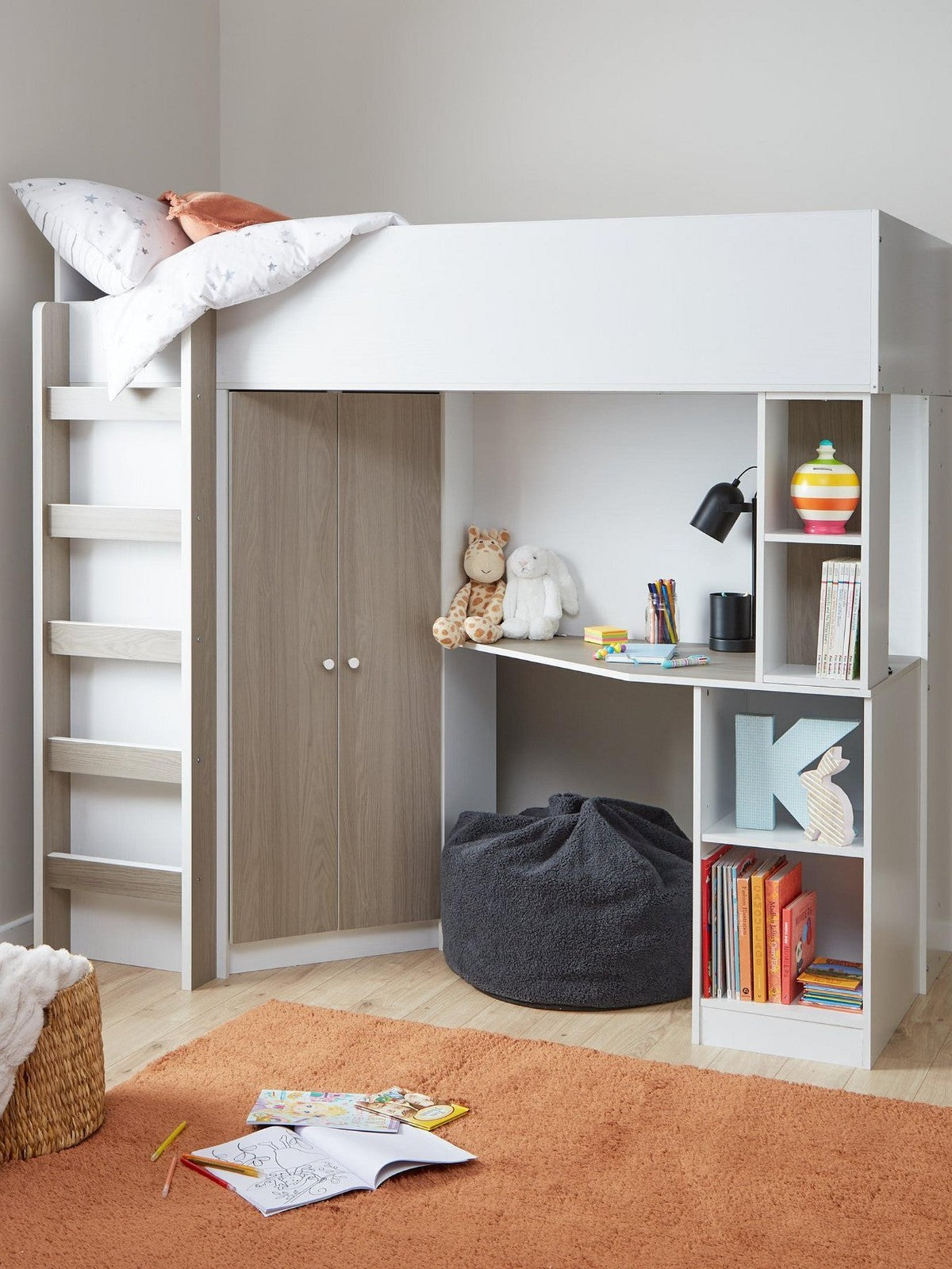 Miami Fresh High Sleeper Bed White & Grey Oak | with Wardrobe & Desk | Kids