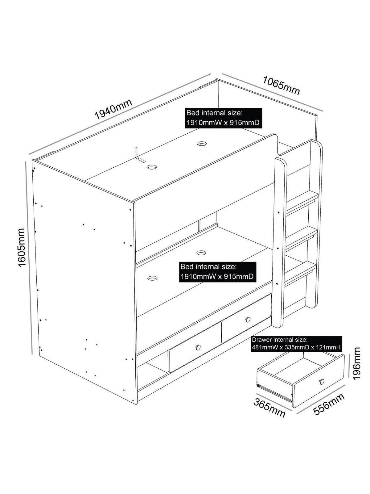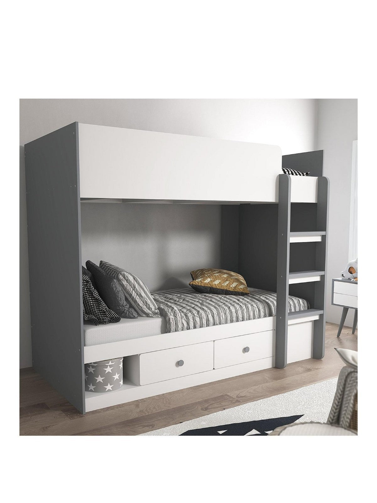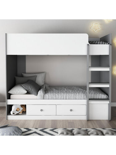 Peyton Storage Bunk Bed White Grey Kids Childrens Single Space Saving Furniture