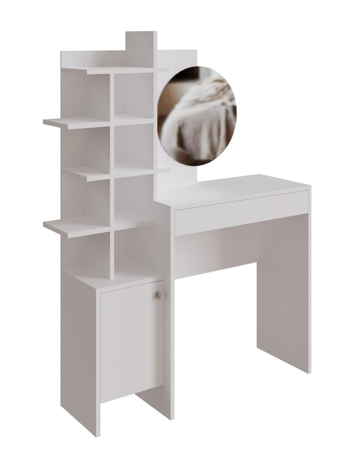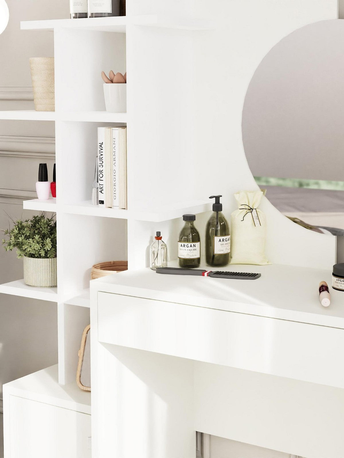 GFW Freyja Dressing Table White | Round Mirror & Storage | 113cm Width