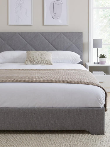 Key to its statement-making style is a soft padded headboard with a stunning diamond stitched pattern.