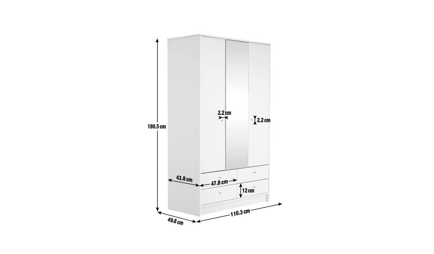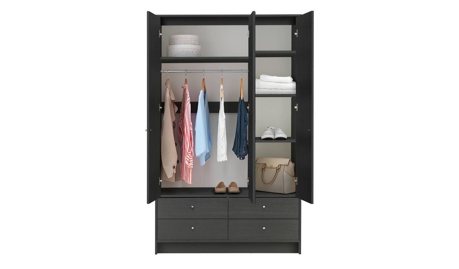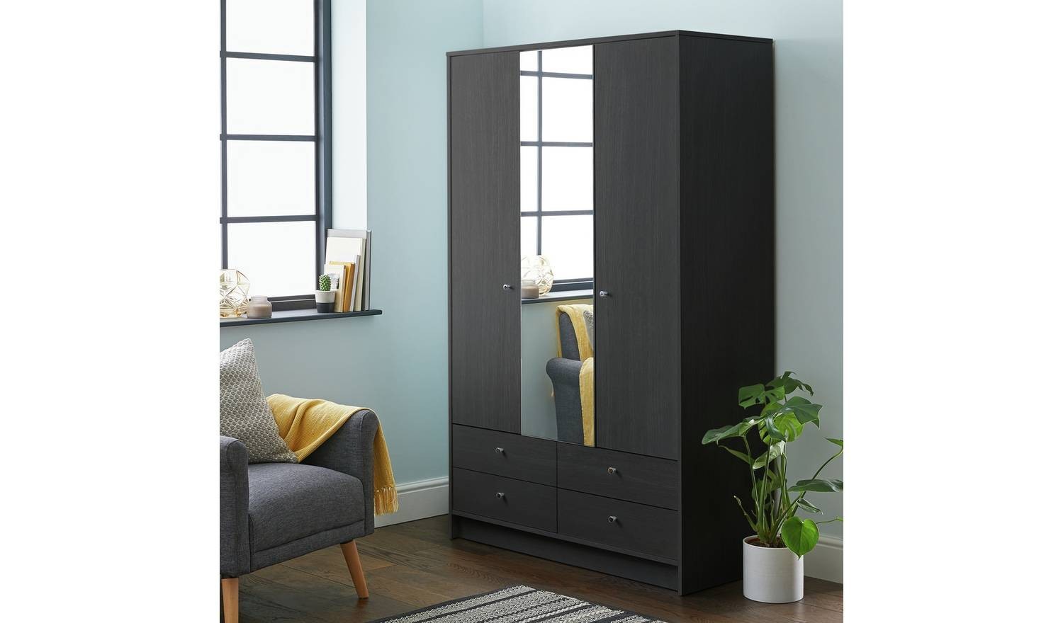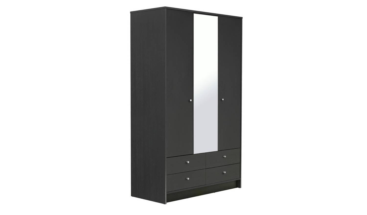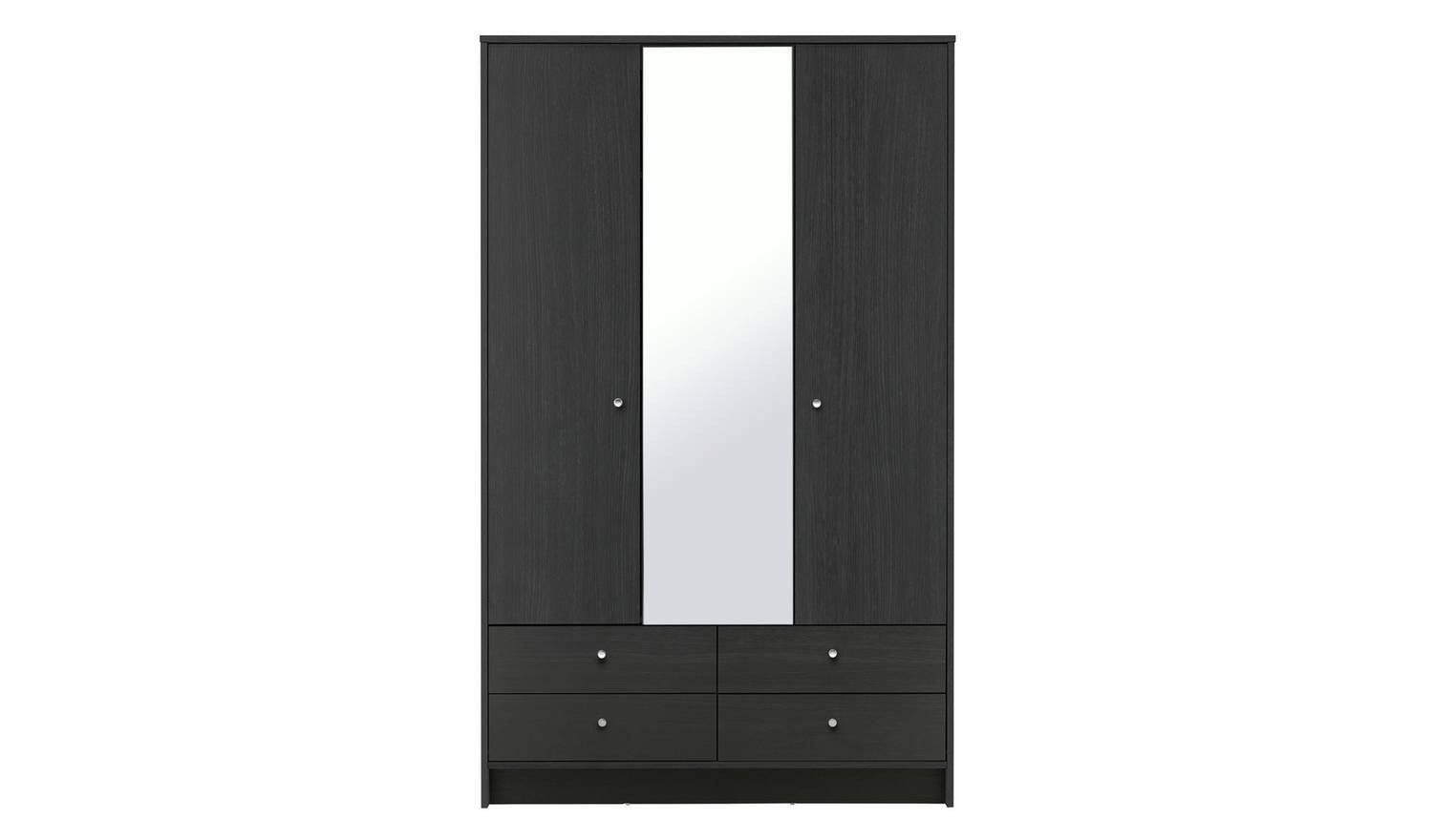Malibu 3 Door 4 Drawer Mirror Wardrobe Black Oak Spacious Bedroom Storage