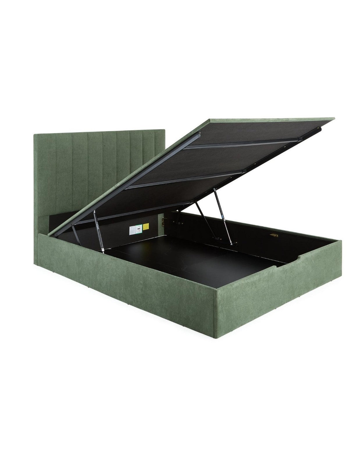 Nova End Lift Up Storage Fabric Ottoman Double Bed Winter Moss