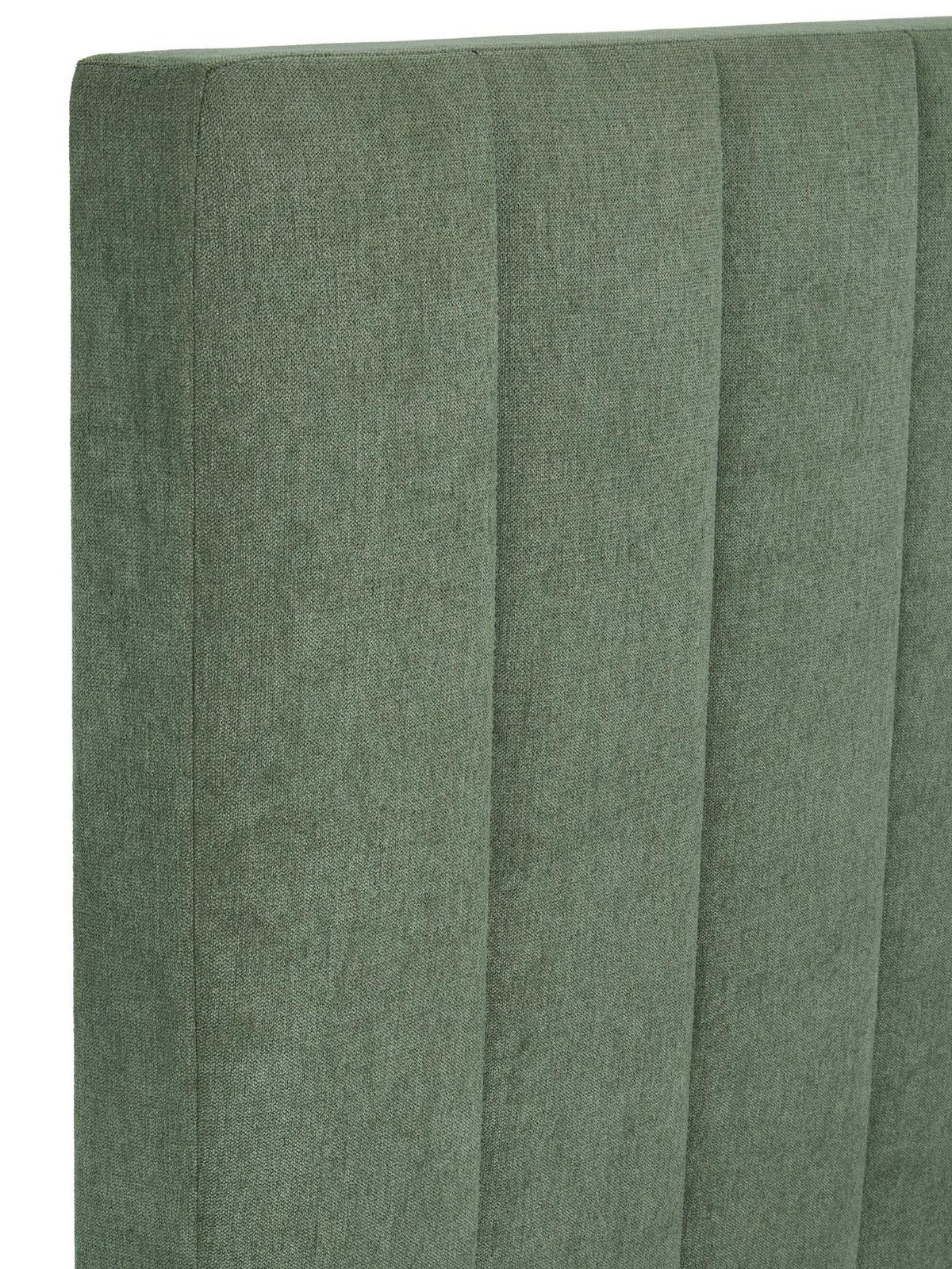 Wrapped in a soft fabric and styled with a panelled headboard, it comes in a winter moss colour.