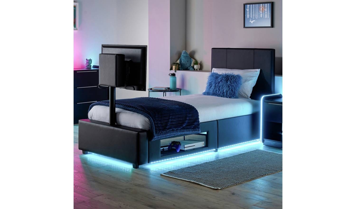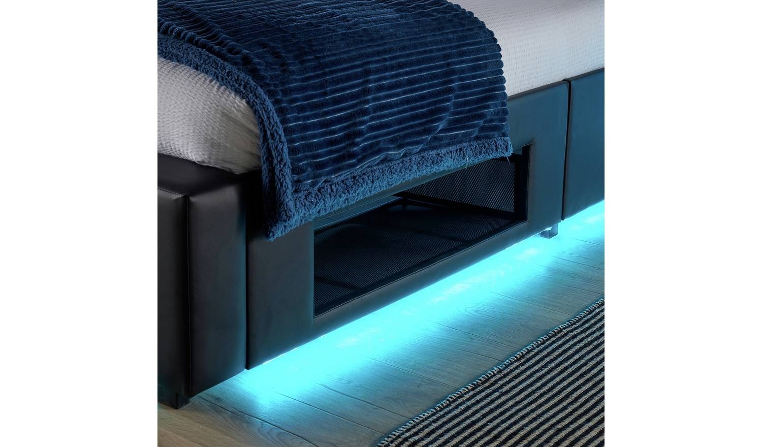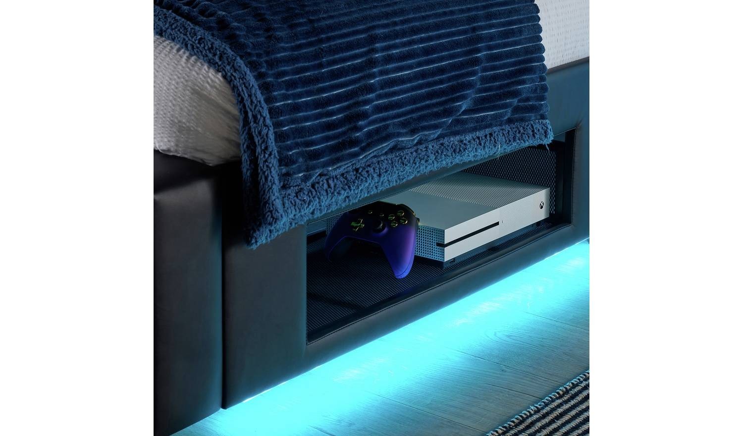 XR Living Ava Single Faux Leather TV LED Bed Frame - Black