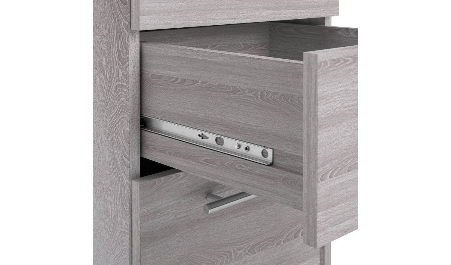 3 drawers with metal runners.
