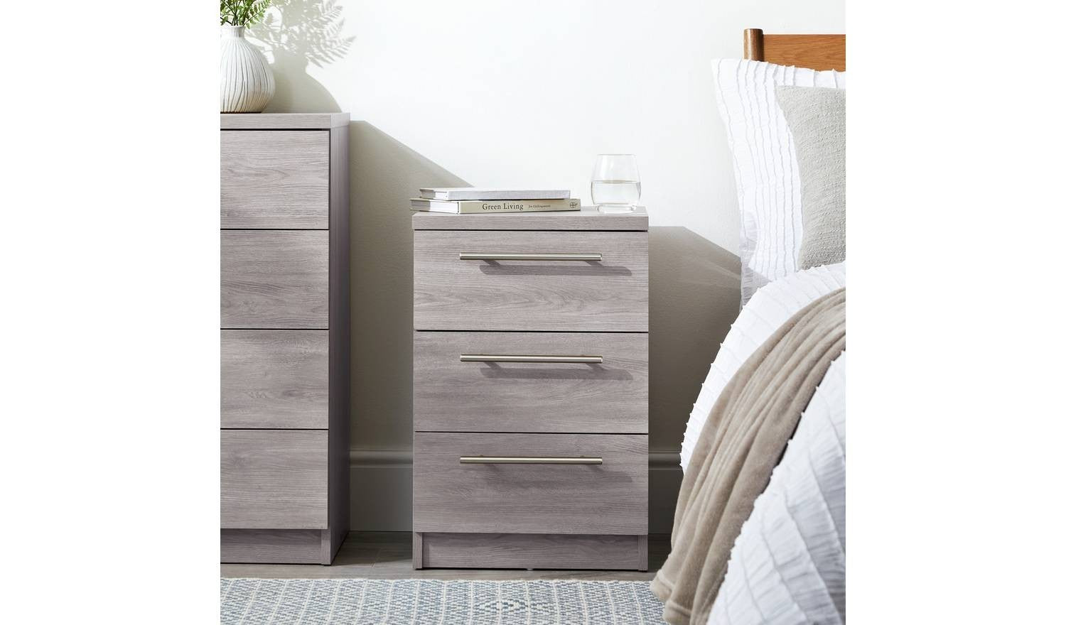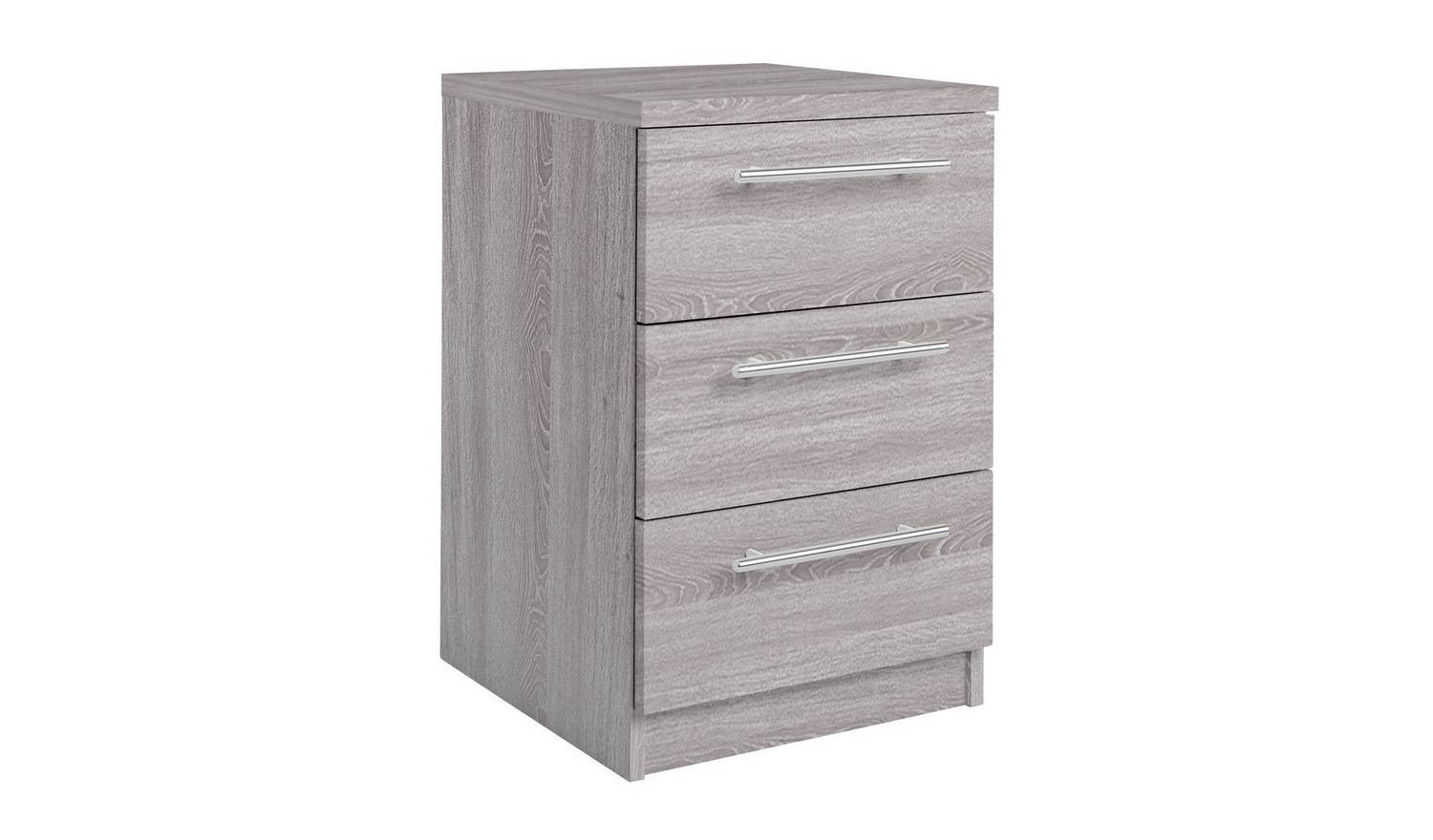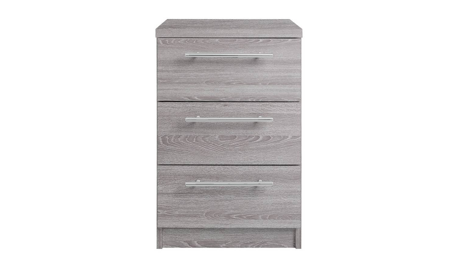 Brisbane 3 Drawer Bedside Grey Oak Compact Nightstand With Drawers