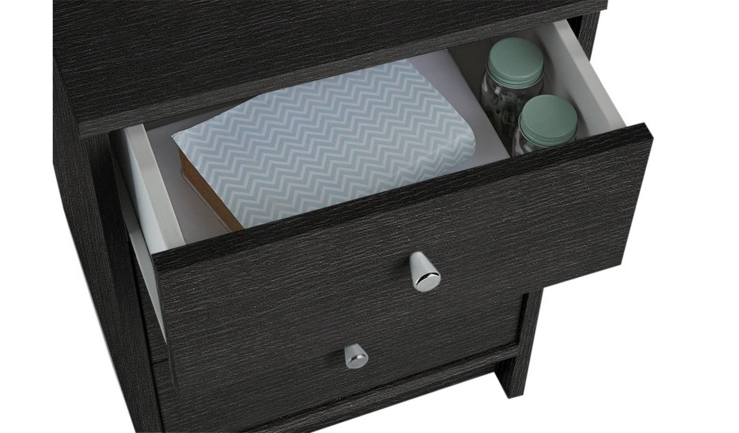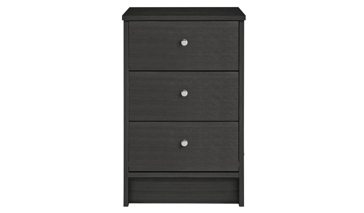 Malibu 3 Drawer Bedside Table Black Oak Effect Compact Storage Organiser