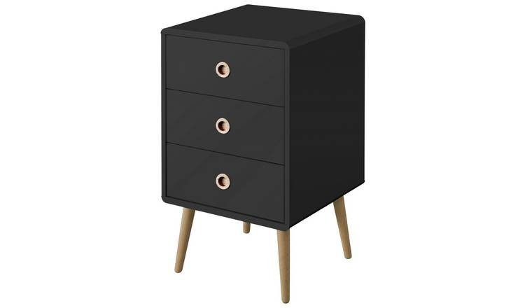 Softline 3 Drawer Bedside Black Nightstand Cabinet Bedroom Storage UK
