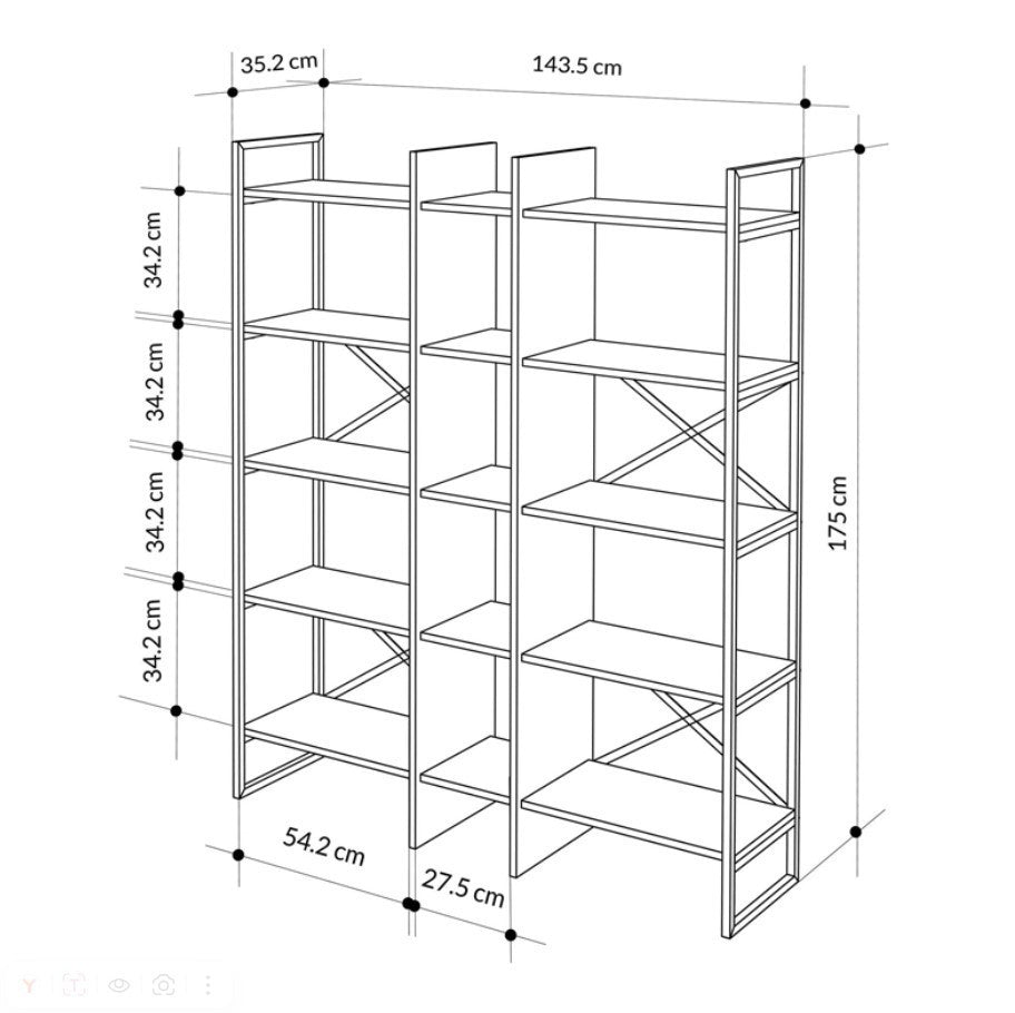 Provides ample storage and display space across five adjustable shelves for books, decorative objects, or media.