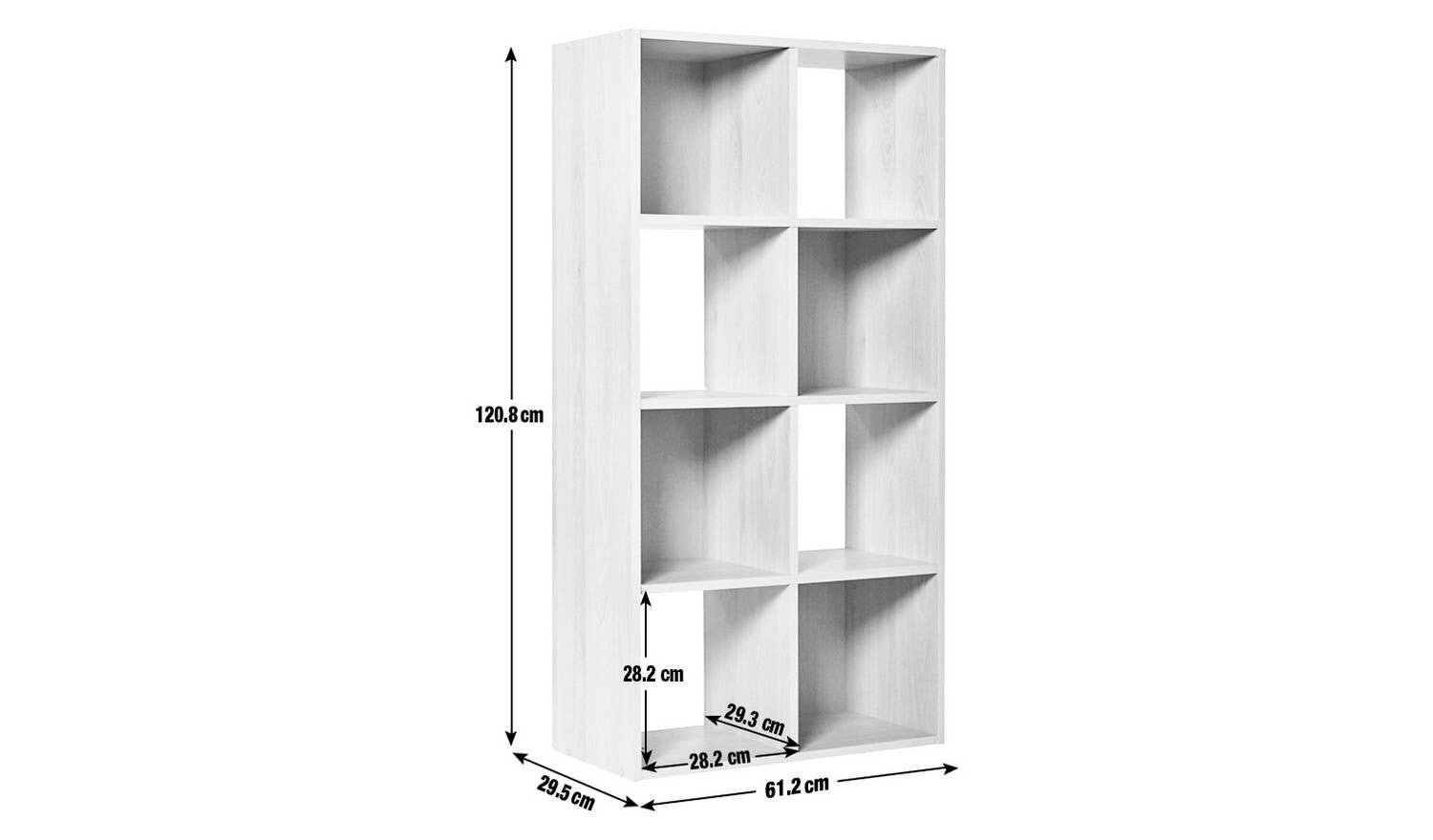 8 cube spaces, ideal for any cube storage boxes up to H28.2, W28.2, D29.3cm.