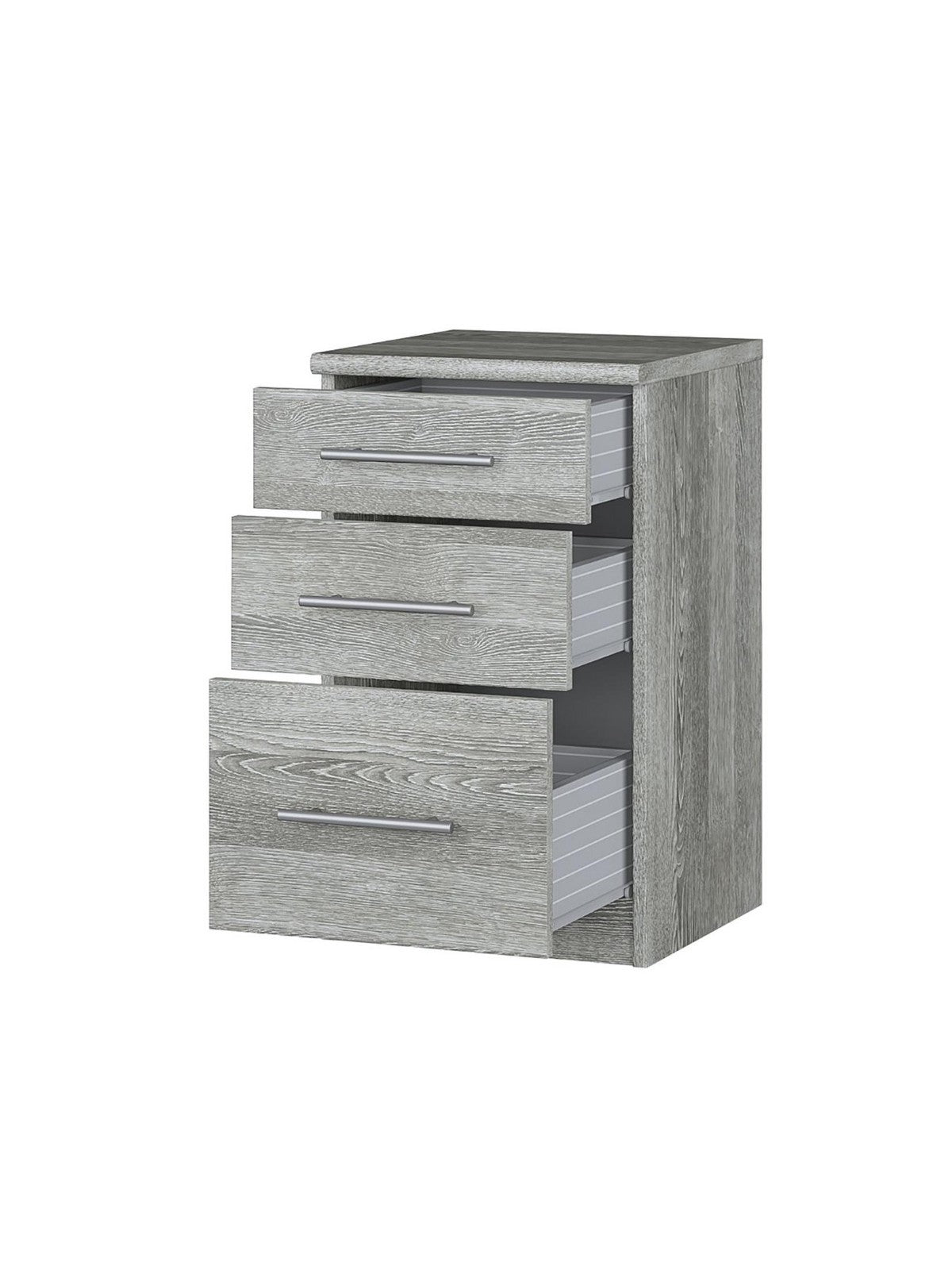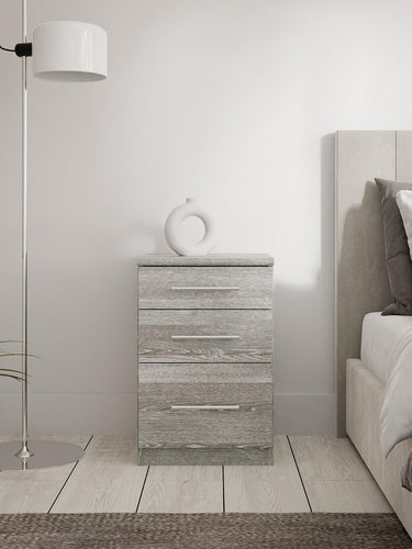 The graduated design features an extra-deep bottom drawer for even more storage space, while the top drawer is shallow so all your bedside essentials are easy to find. All 3 drawers sit on easy-glide metal runners for friction-free opening.