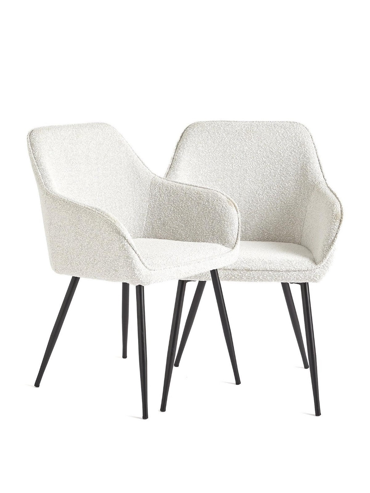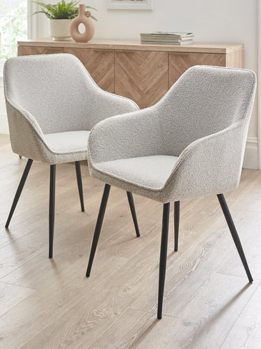 These chairs strike the perfect balance between comfort and style. The inviting boucle fabric invites you to sit and relax, while the clean-lined black legs keep the look elegantly modern. Sold as a convenient pair, they offer an instant upgrade to your dining space without the need to source matching chairs individually.