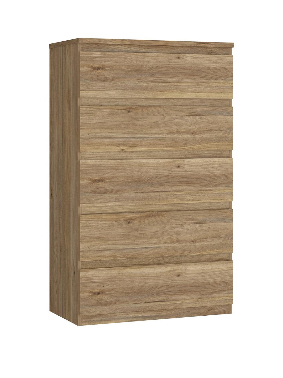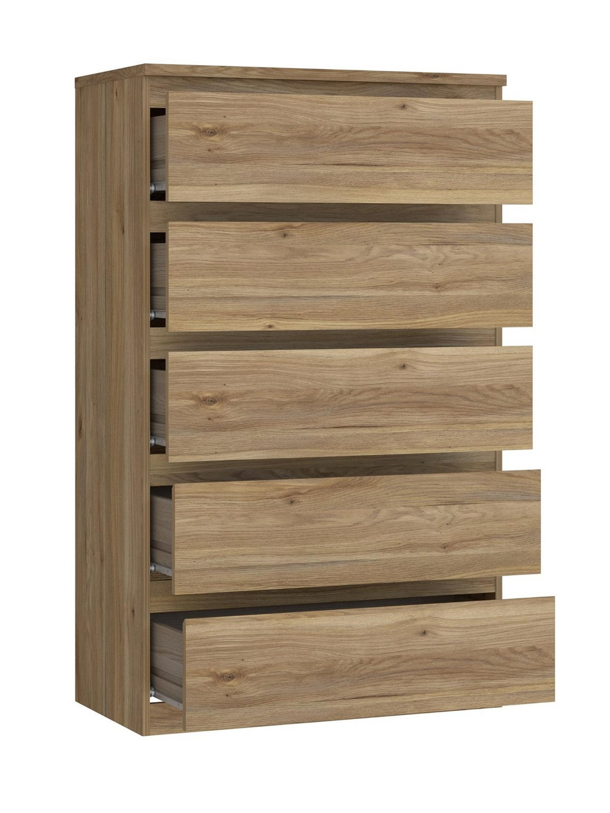 Lisson 5 Drawer Chest New Oak | Handle-Free Design | 128cm Tall