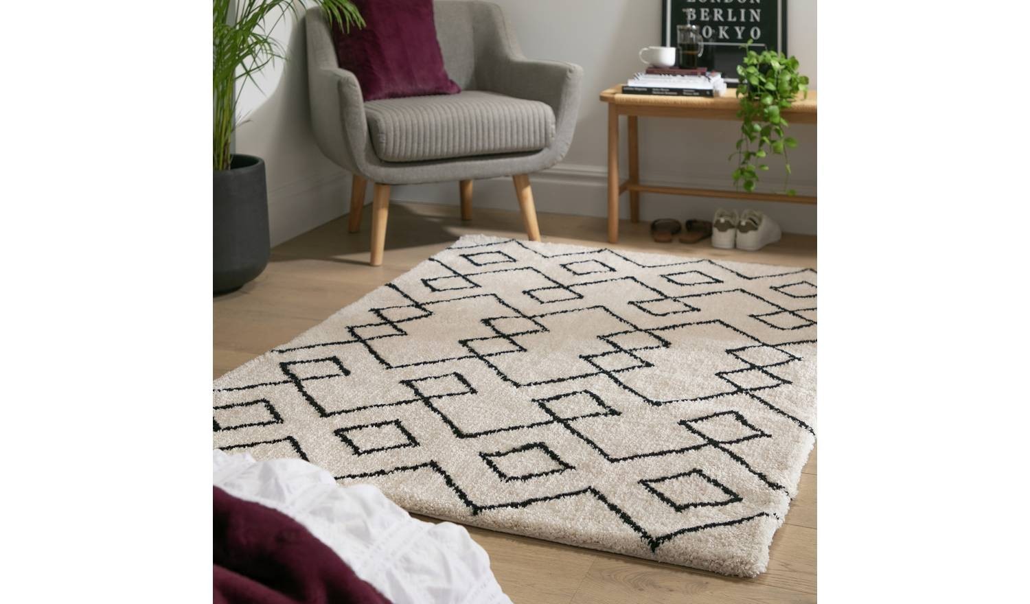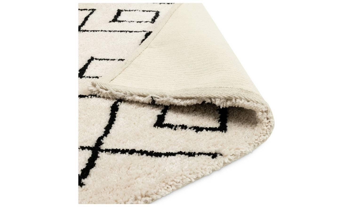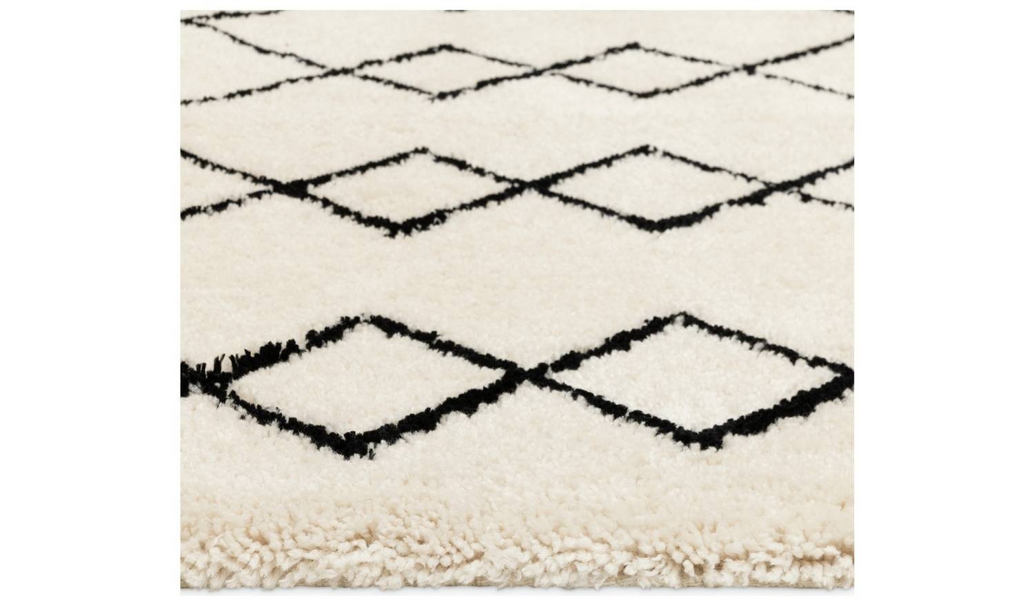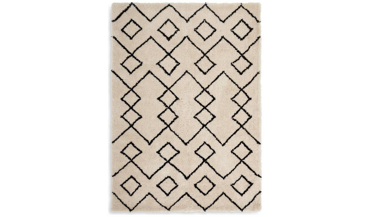 Diamond Tufted Cream & Black Shaggy Rug 120x170cm Patterned Living Room
