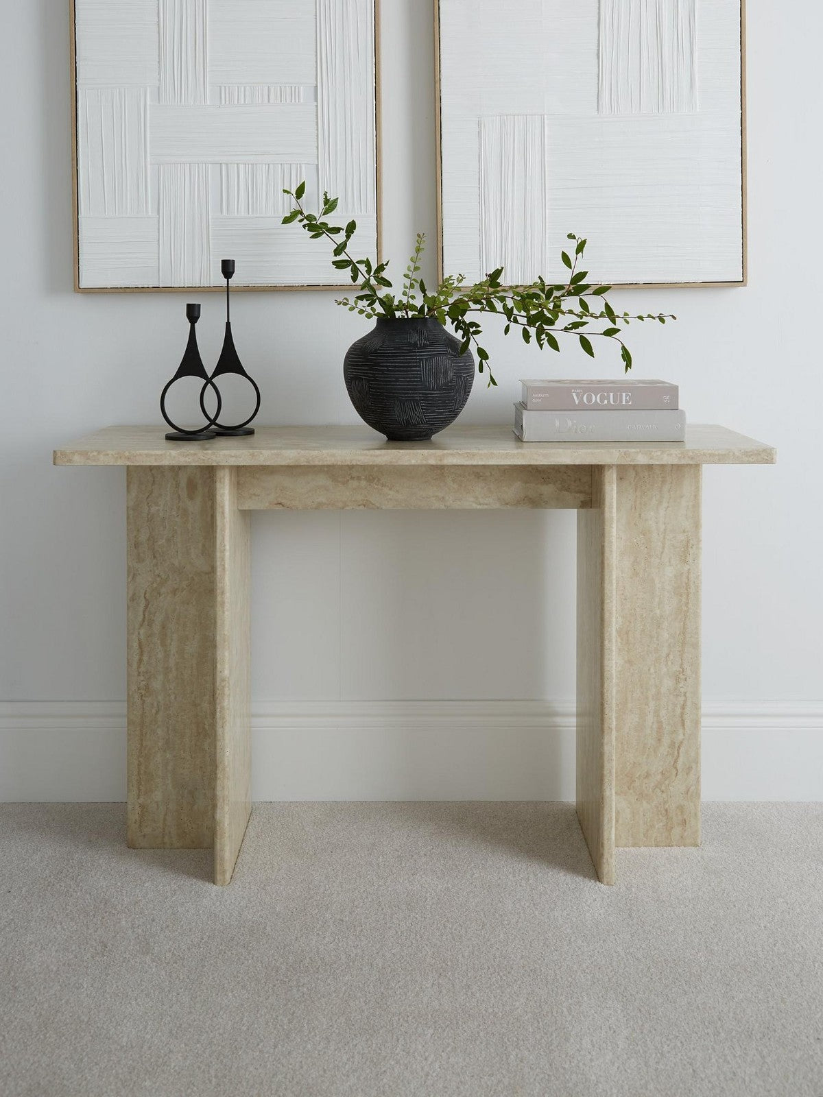 Bloc Stone Effect Console Table Hallway Entryway Furniture Modern UK