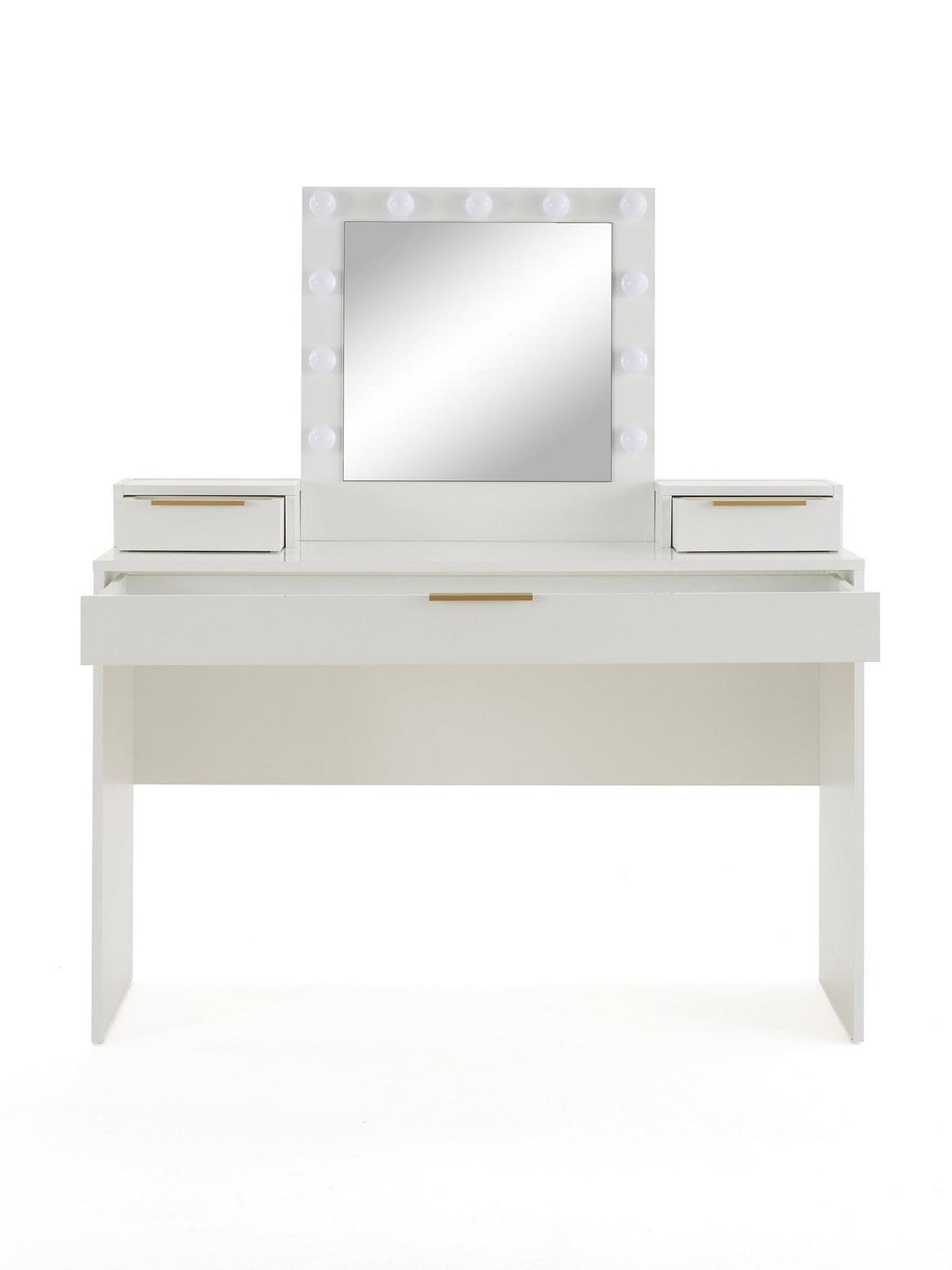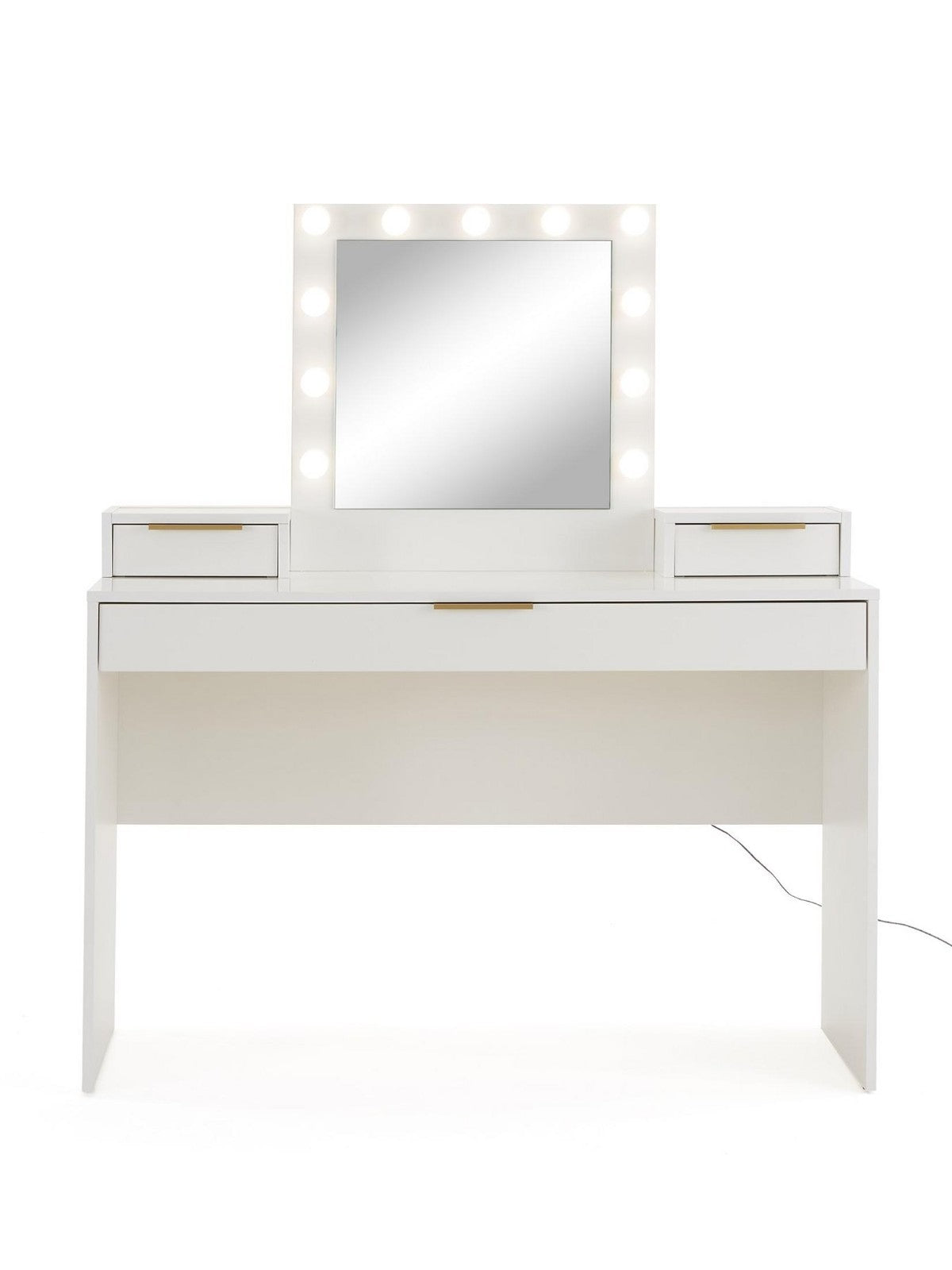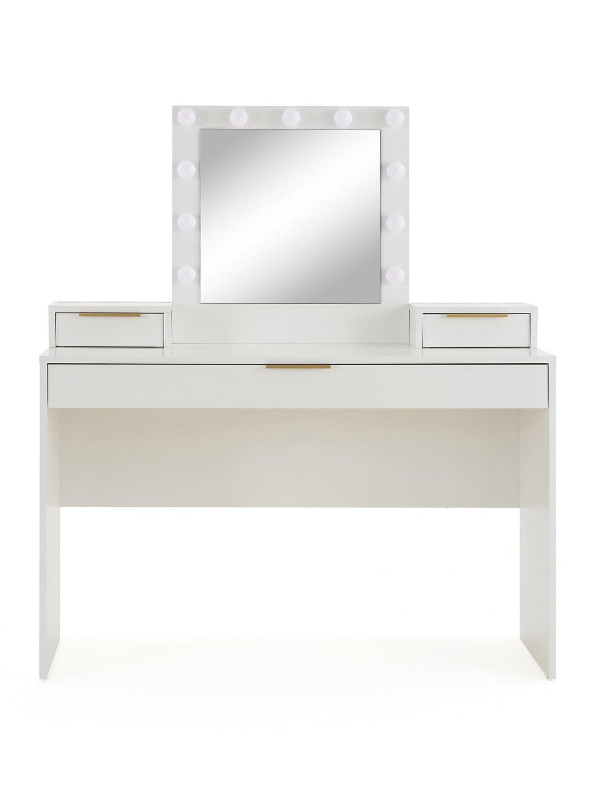 Arrives as a complete package with dressing table and illuminated mirror for a coordinated, ready-to-use beauty station.