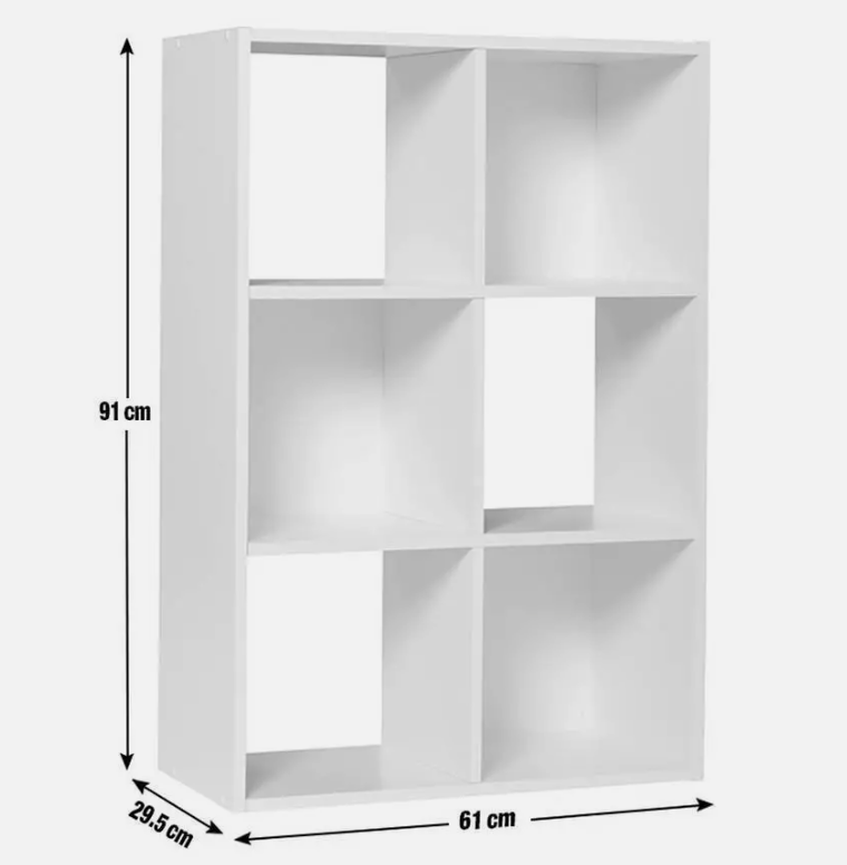 6 cube spaces, ideal for any cube storage boxes up to H28.2, W28.2, D29.3cm.