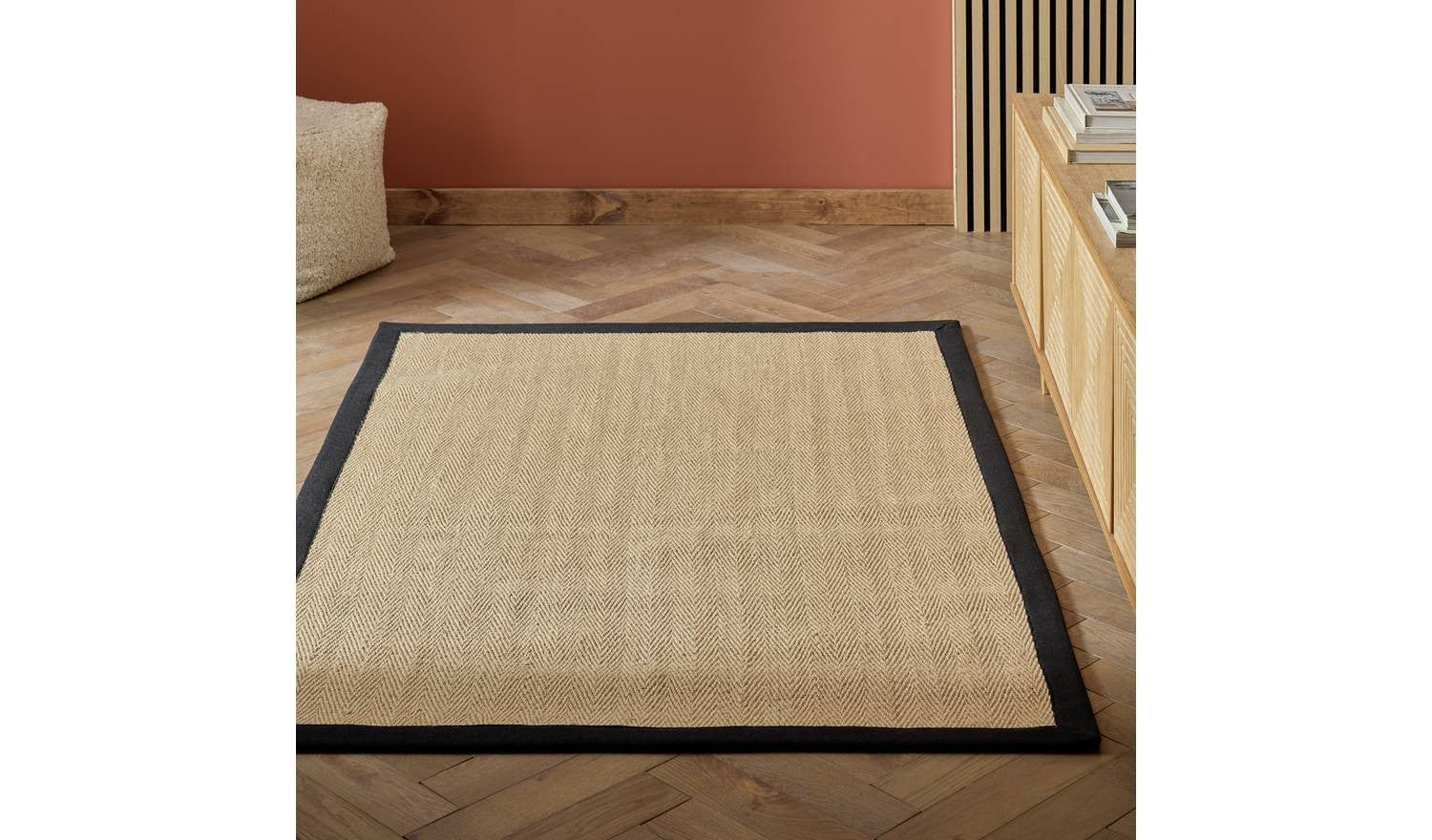 Herringbone Black Border Jute Rug 120x170cm Natural Living Room Floor