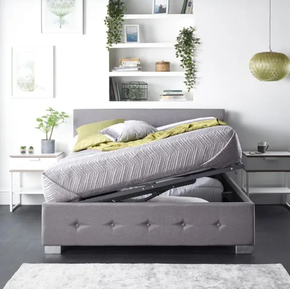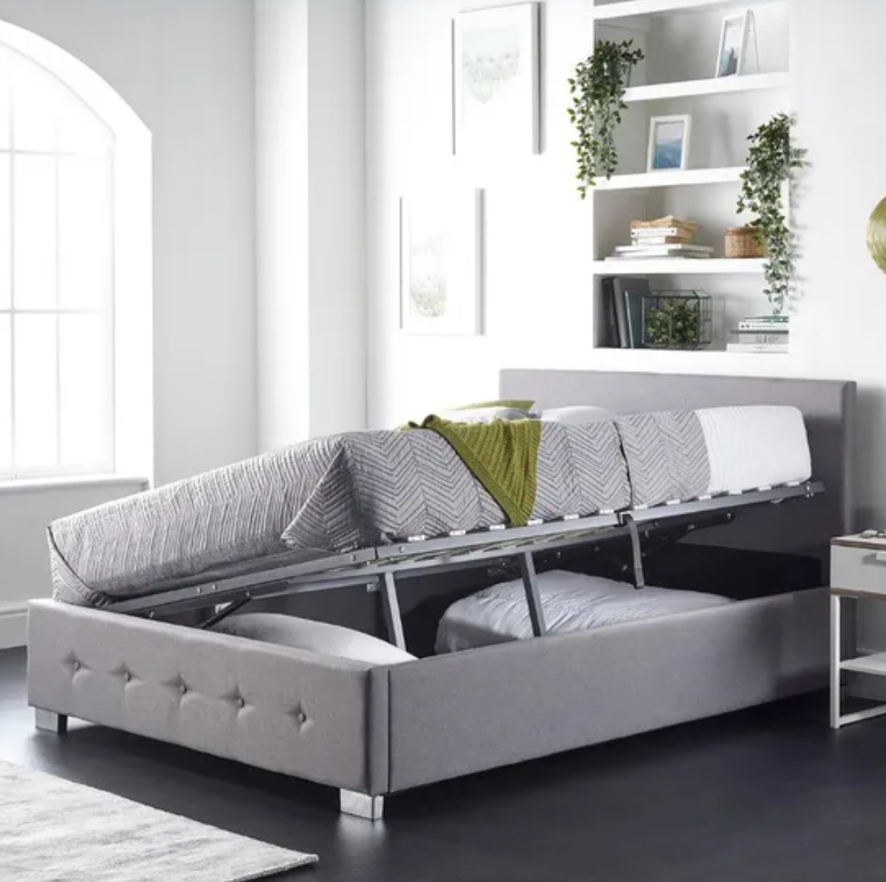 Choose from textured linen, sumptuous plush velvet or glitzy crushed velvet. Featuring quality gas lift pistons, the large storage area can be easily accessed enabling a large variety of items to be tidily stored away. The mechanism is set for side opening and can be constructed for either side to open. The base is covered with a black fabric cloth so stored items are not in contact with the floor.