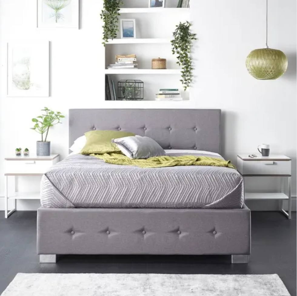 - Features buttoned and padded headboard with sturdy sprung slats.