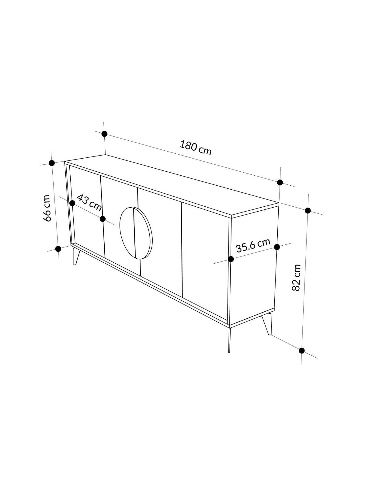 The Decortie Gora Large Sideboard in striking black and white combines contemporary style with exceptional functionality. Featuring four spacious cabinets with fixed shelving, this versatile storage unit provides ample organization for dining, living, or hallway spaces while making a bold design statement.