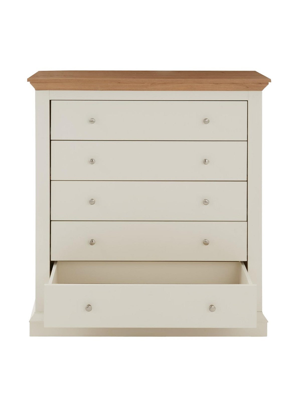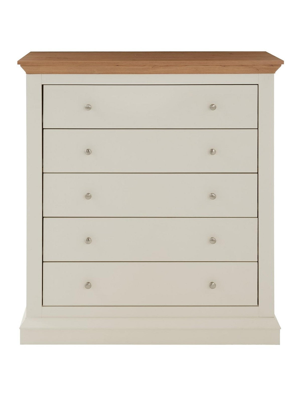 Hanna 5 Drawer Chest Cream Oak | Farmhouse Style | Metal Runners