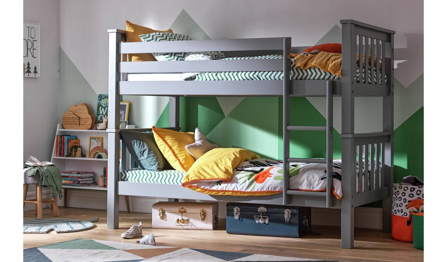 Heavy Duty Detachable Bunk Bed Frame Grey For Kids Childrens Bedroom