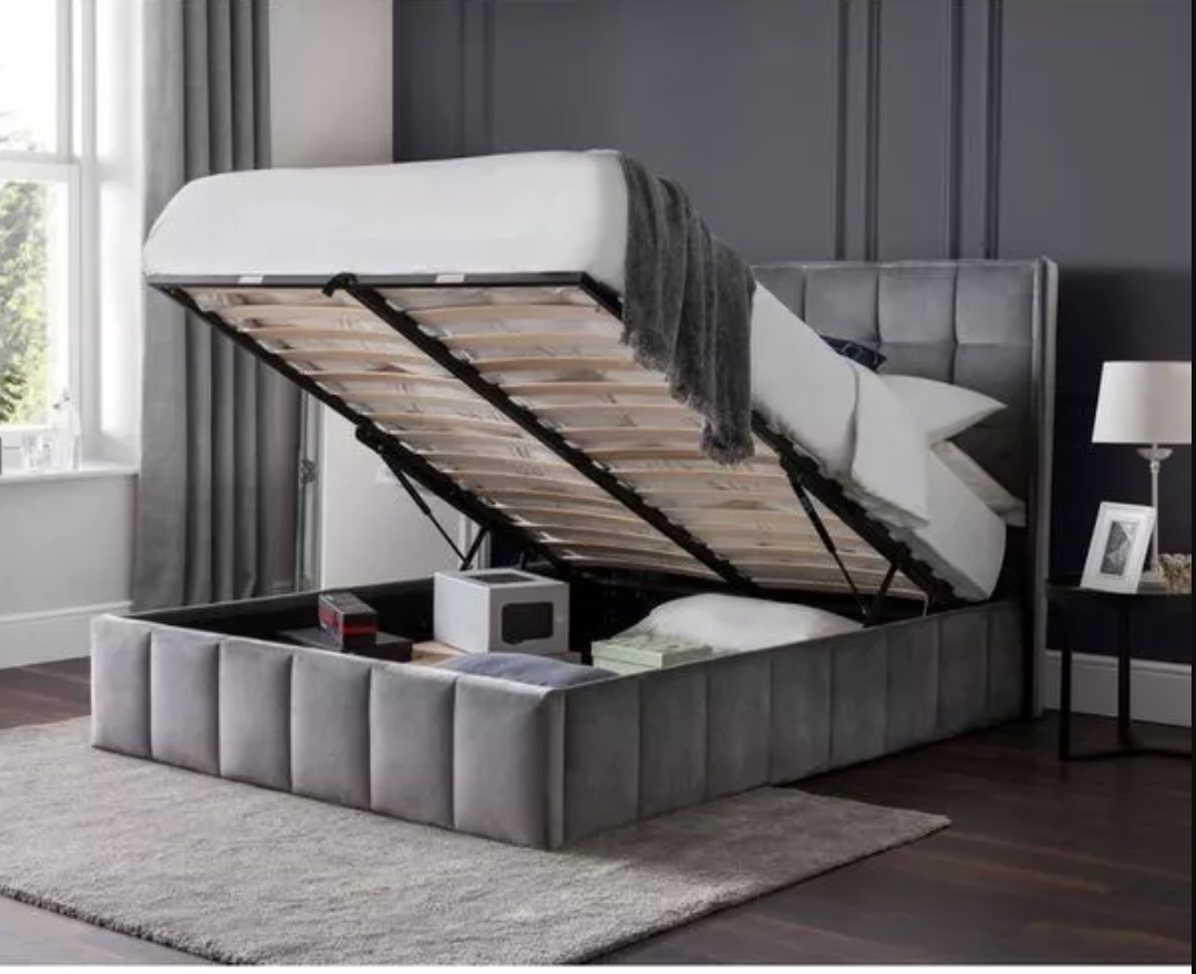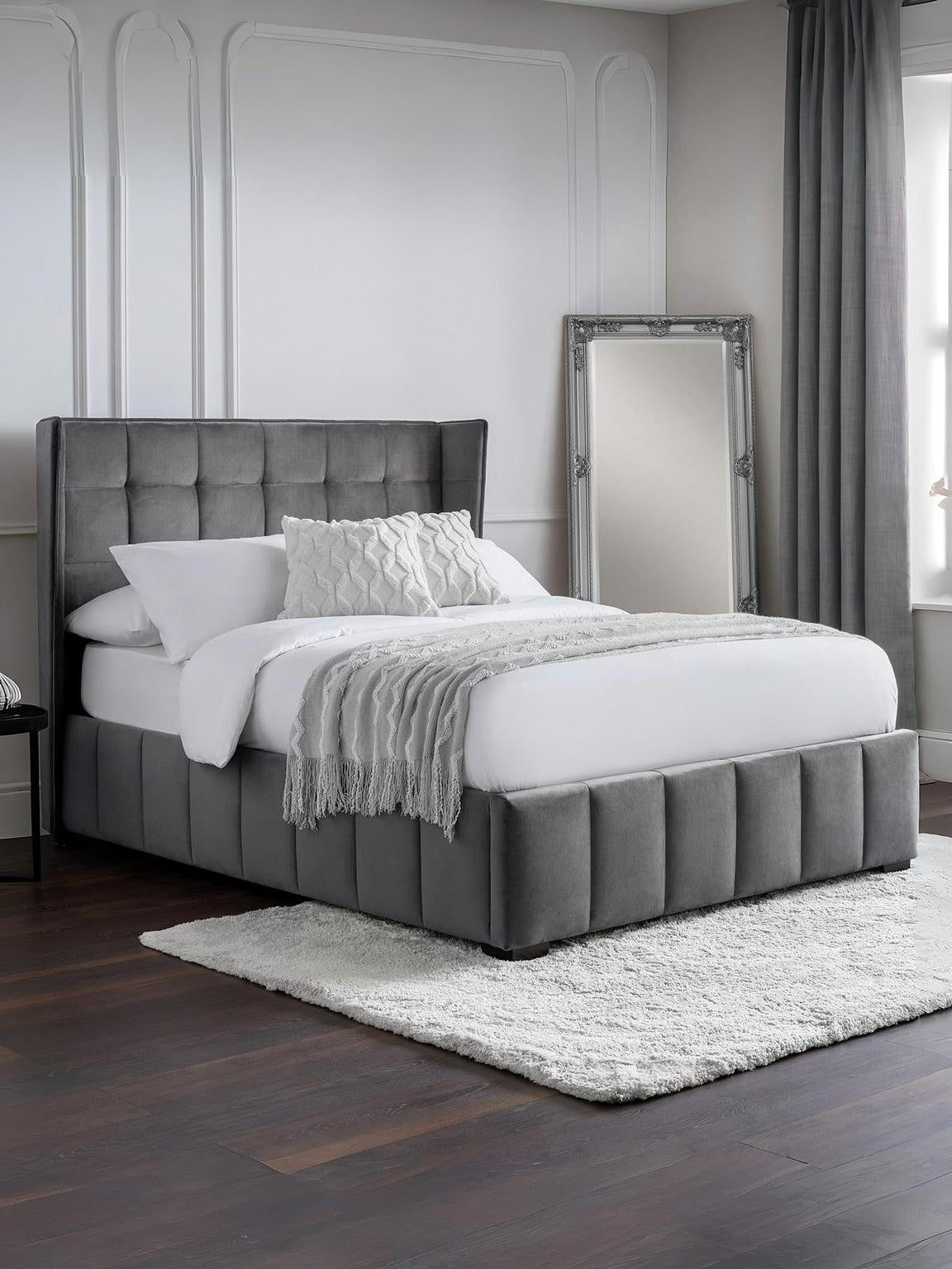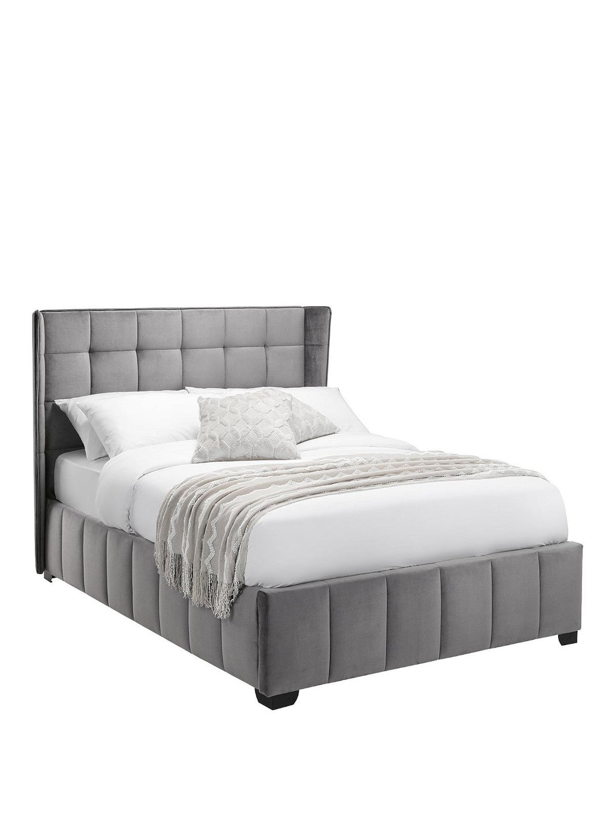 Julian Bowen Gatsby Ottoman Double Bed Grey | Velvet Wing Headboard Sprung Slats