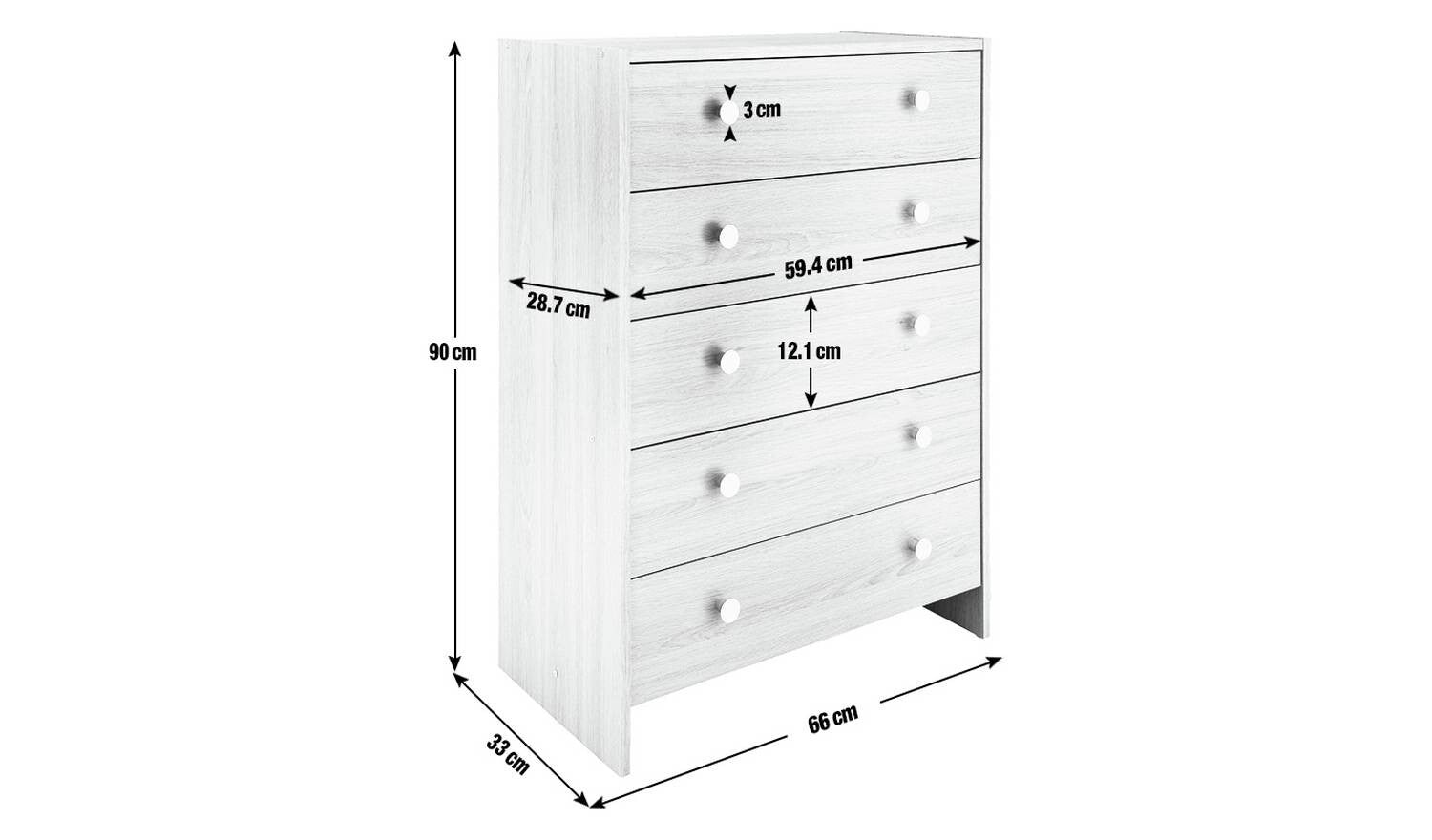Seville 5 Drawer Chest - Oak Effect