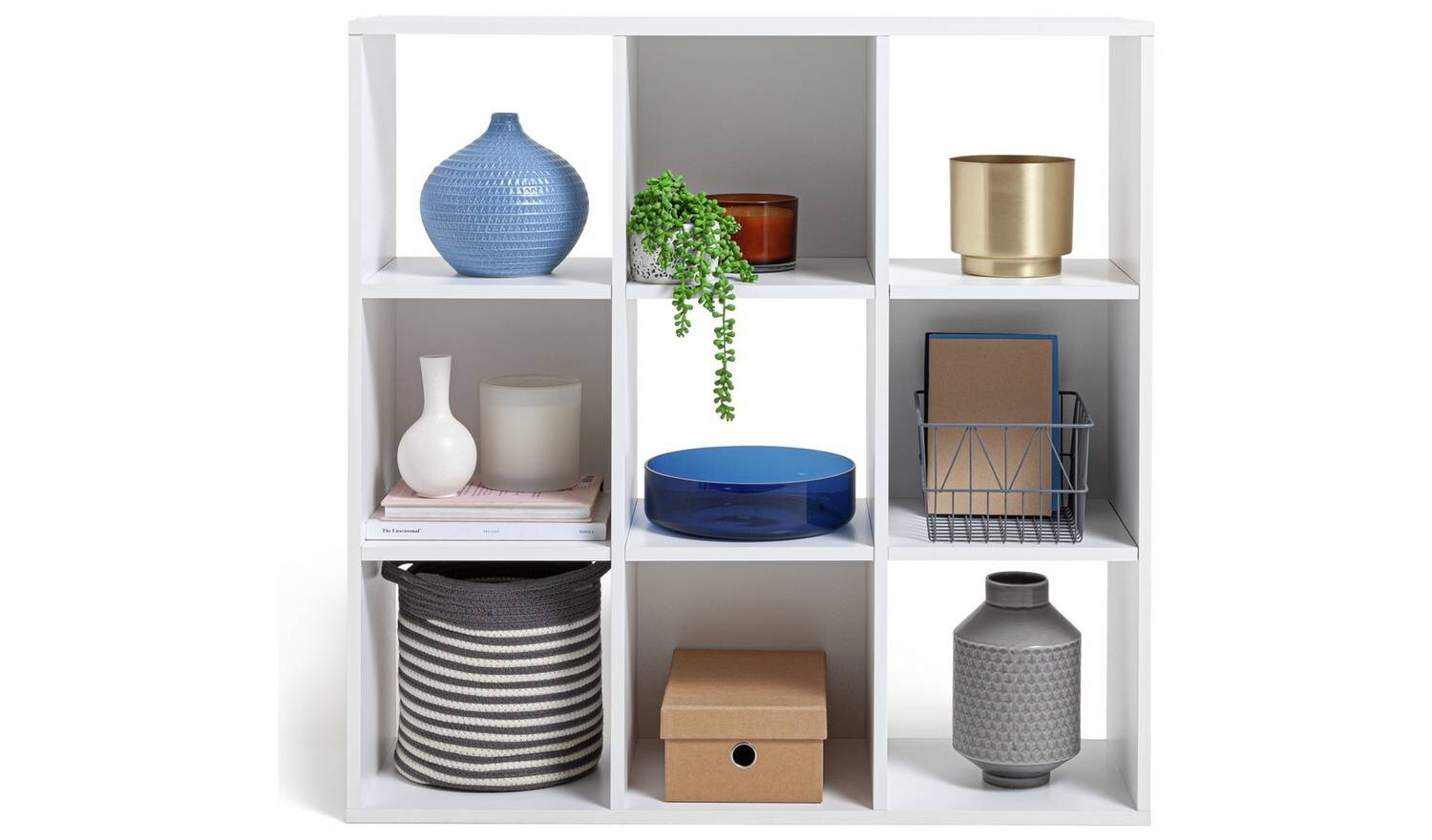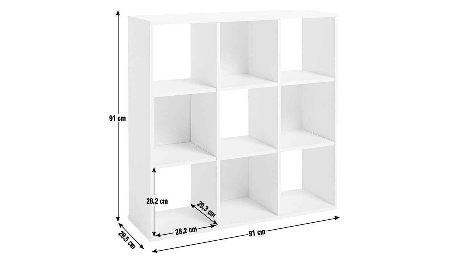 9 cube spaces, ideal for any cube storage boxes up to H28.2, W28.2, D29.3cm.