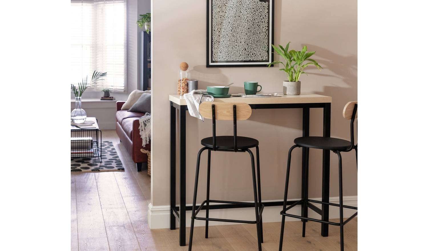 Zayn Black Bar Table & 2 Black Chairs For Small Spaces UK