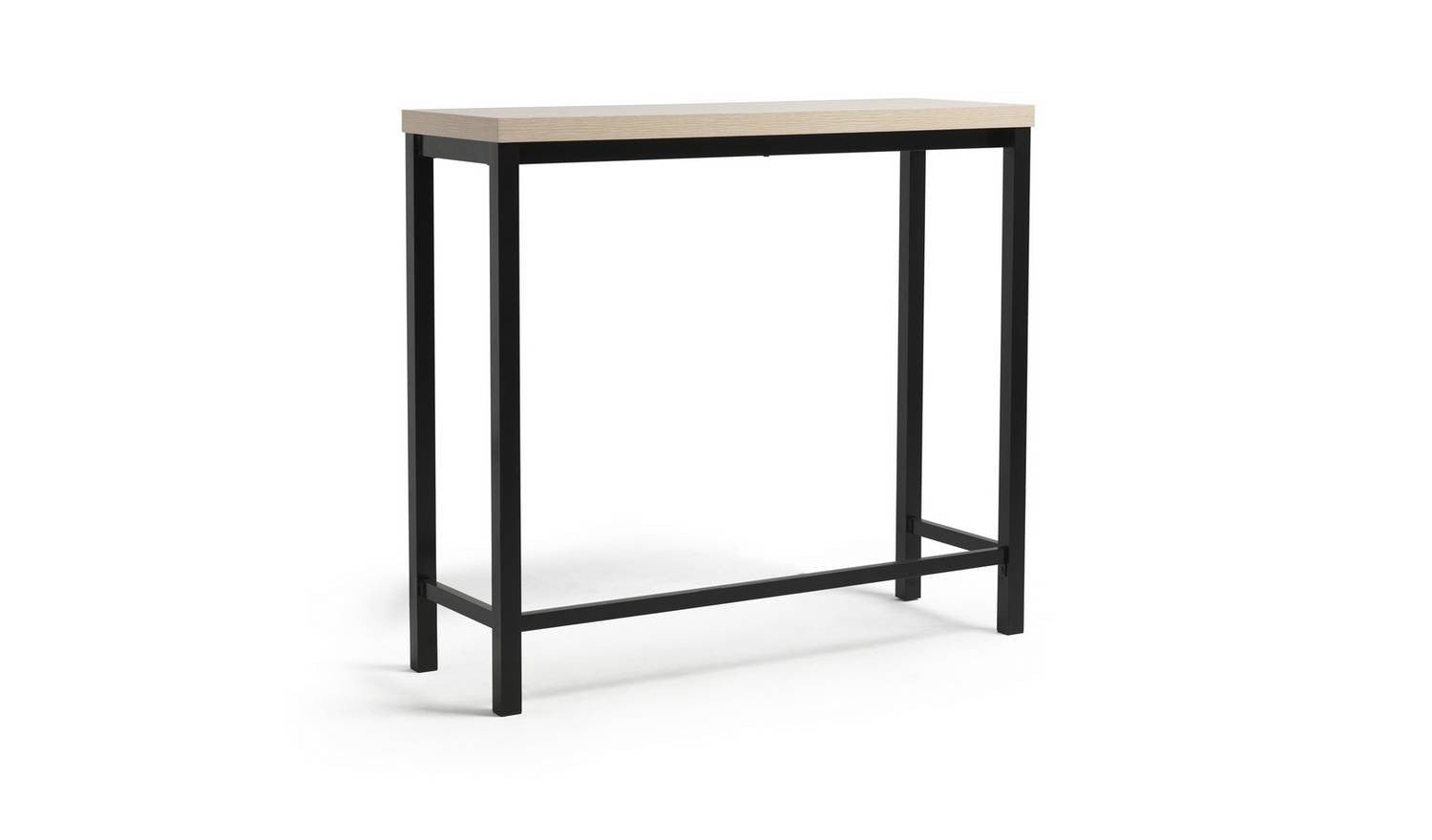 Wood effect table with metal legs.