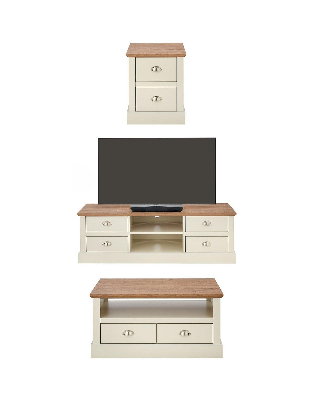 Crawford 3 Piece Package TV Unit, Coffee Table and Lamp Table Ivory & Oak