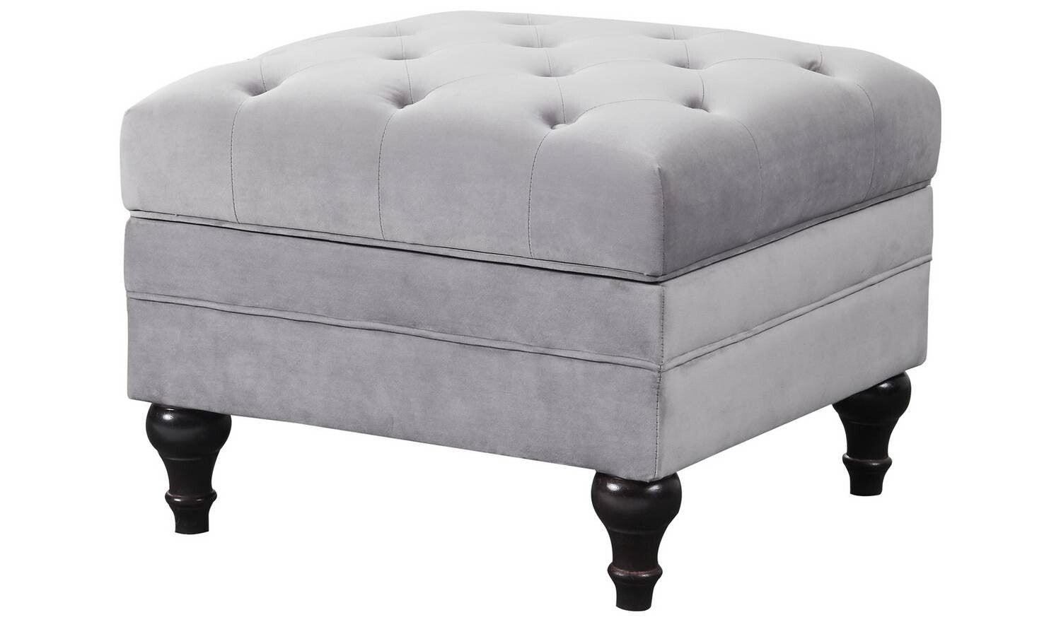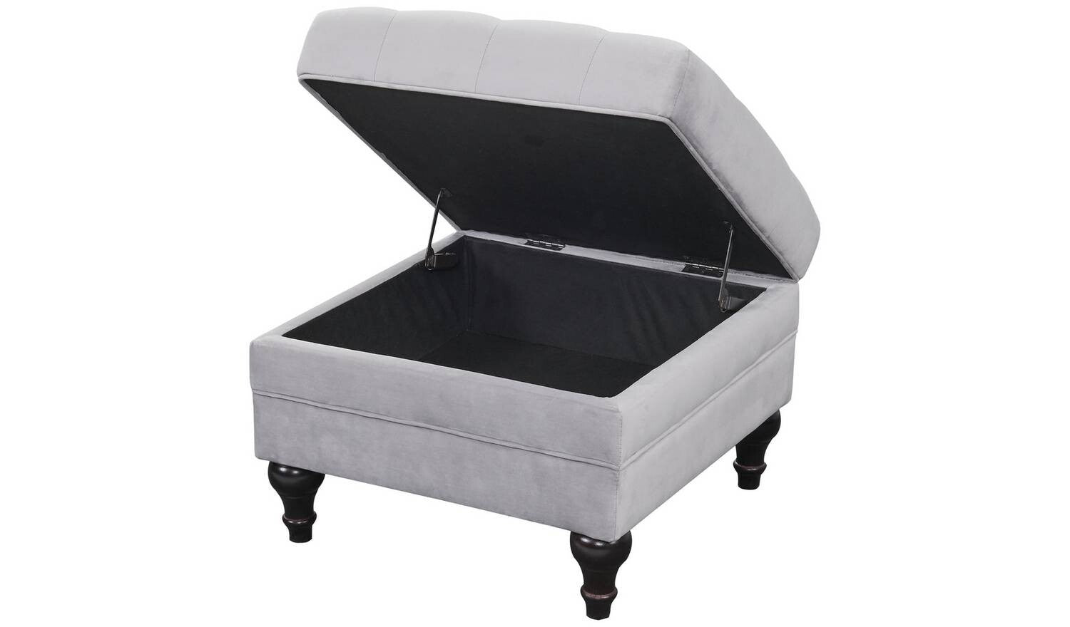 Habitat Chesterfield Velvet Storage Footstool - Light Grey