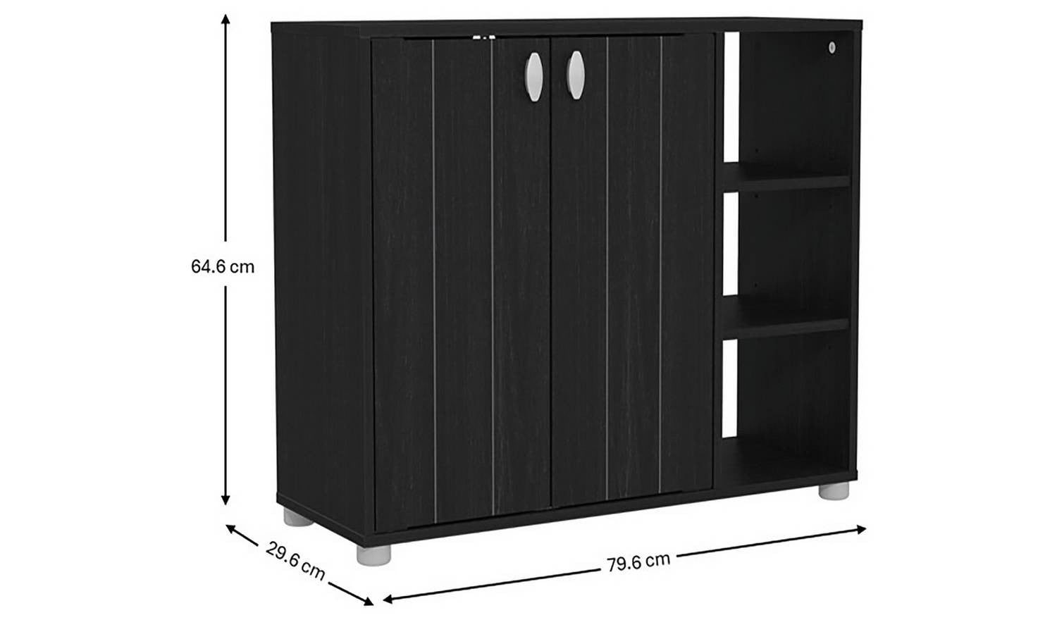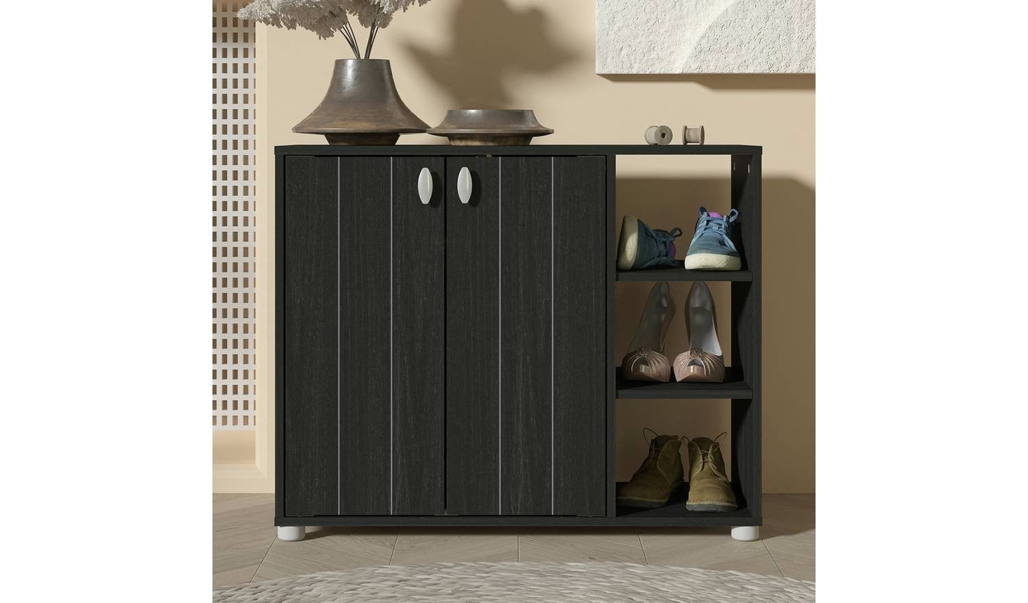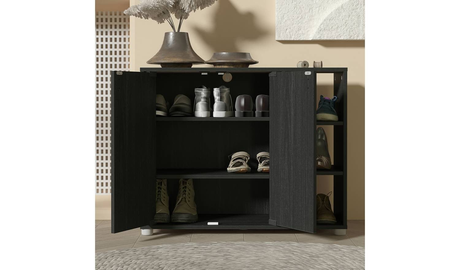 GFW Bideford 2 Door Shoe Storage Cabinet Black Hallway Entryway Furniture