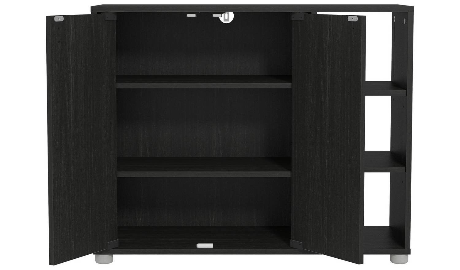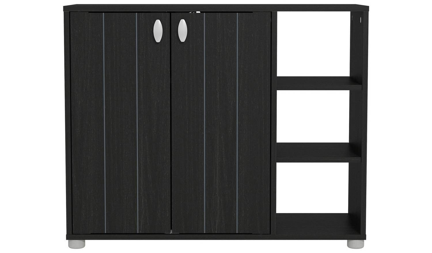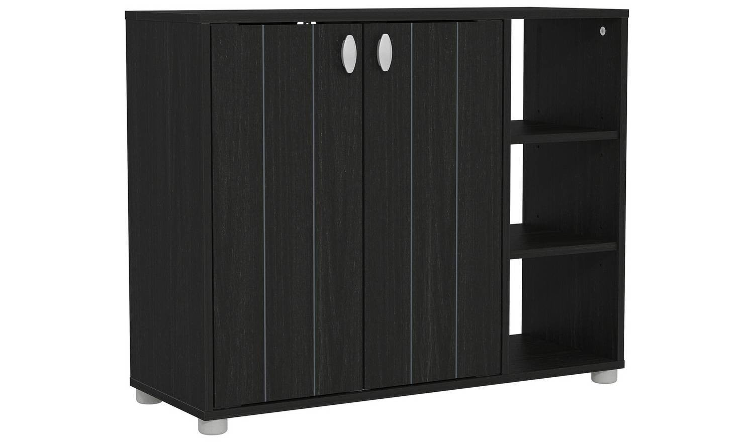 GFW Bideford 2 Door Shoe Storage Cabinet Black Hallway Entryway Furniture