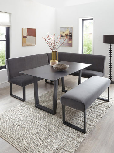 Nevada 160 cm Long Dining Table & Corner Seat Bench Dining Set Grey Kitchen UK