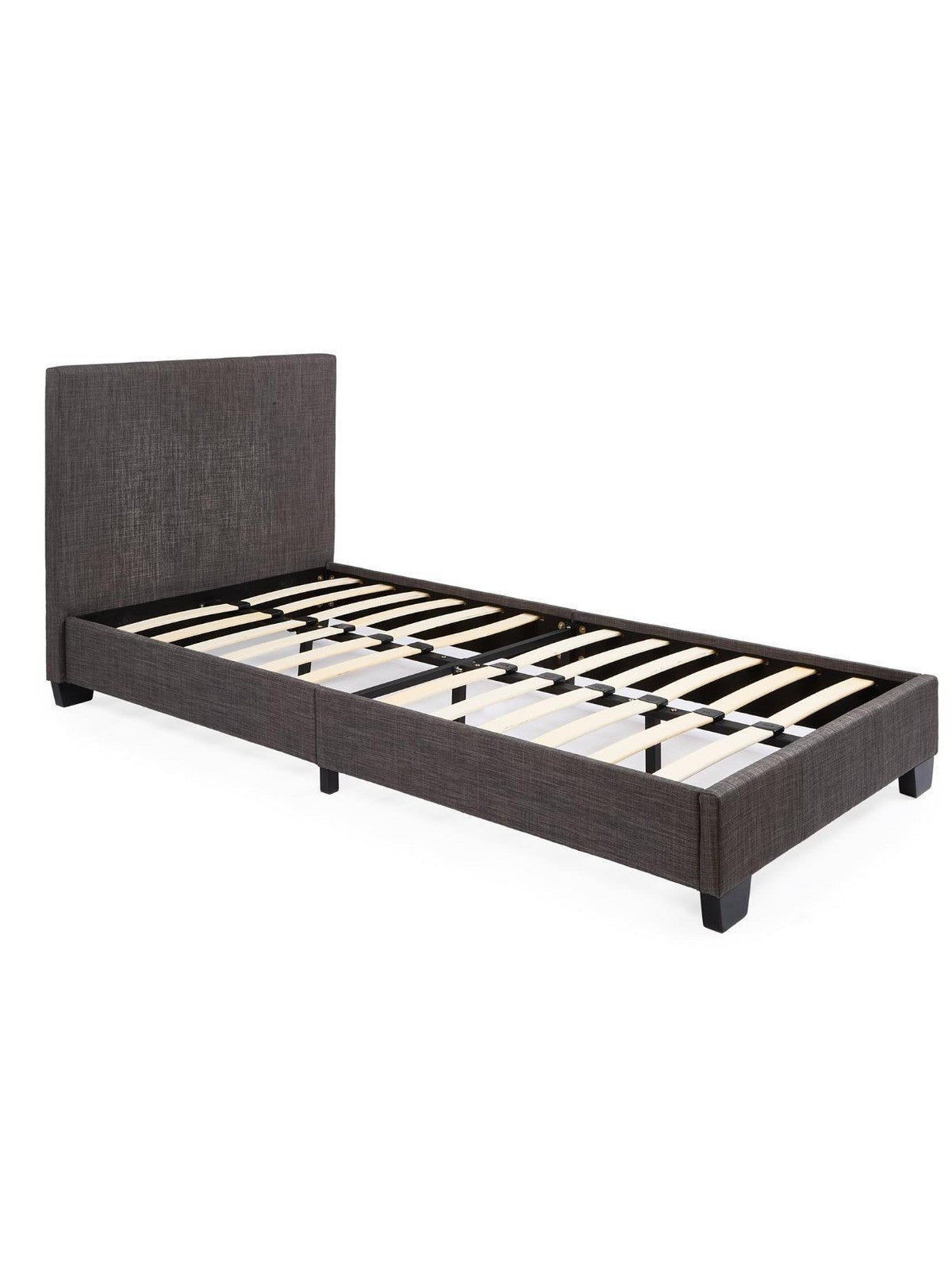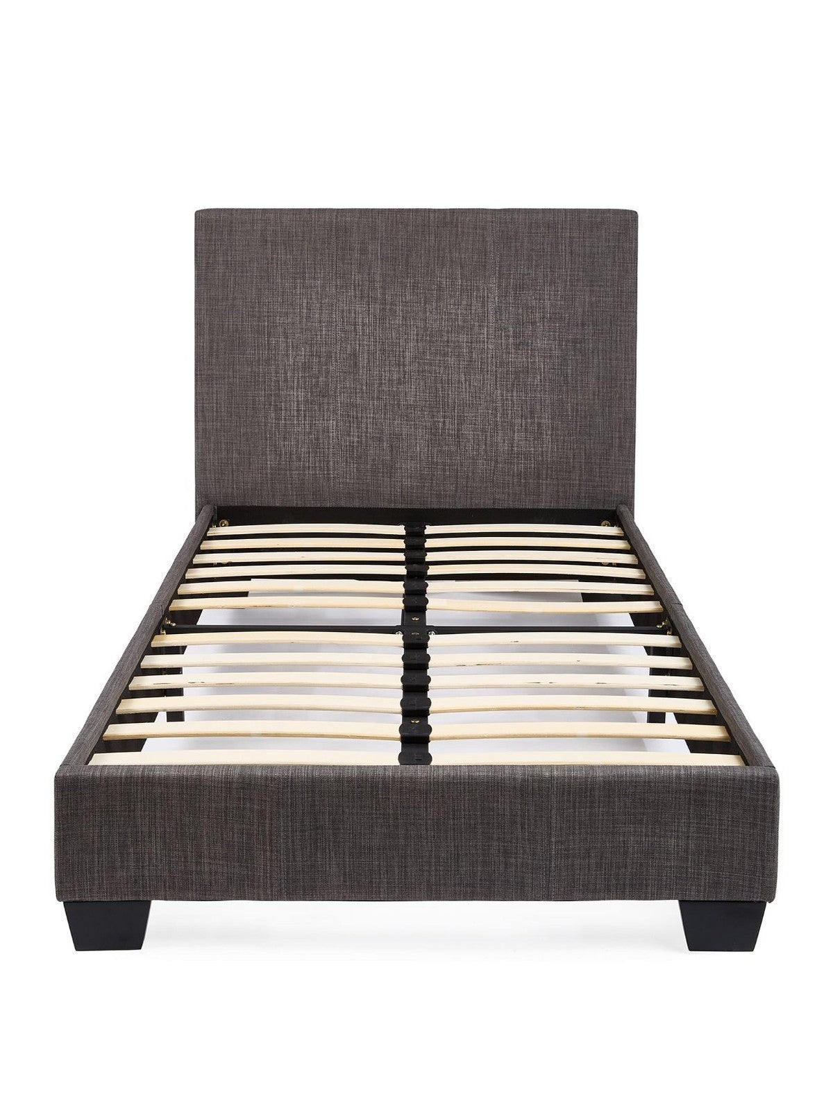 Riley Fabric Single Bed Frame Dark Grey Upholstered Headboard Bedroom