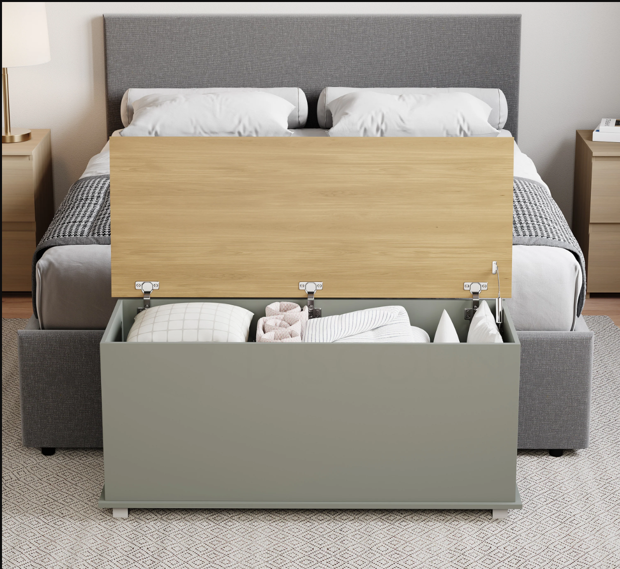 Arlington Storage Ottoman Grey Foot Stool Bench Seat Box Chest Lid UK
