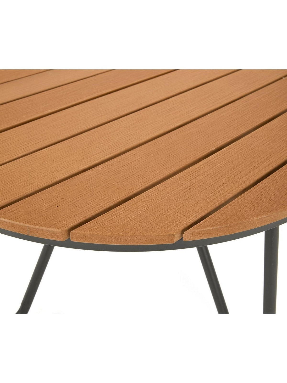 The round polywood coffee table is both beautiful and practical - the perfect spot for your drinks, snacks, sun cream or speakers.