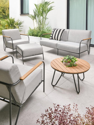 With 2 single seat sofas and a love seat sofa, this set is the perfect place to bring your loved ones together, for fun and laughter in the sunshine. The ottoman is the perfect finishing touch, designed to rest your tired feet after a long day, or help you kick back and soak up some rays during the weekend.