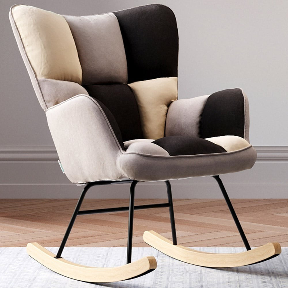Living & Home Tufted Rocking Chair Black Grey Cream | Linen Upholstered