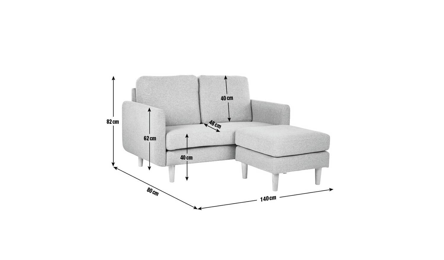 Remi Fabric 2 Seater Chaise Sofa - Charcoal