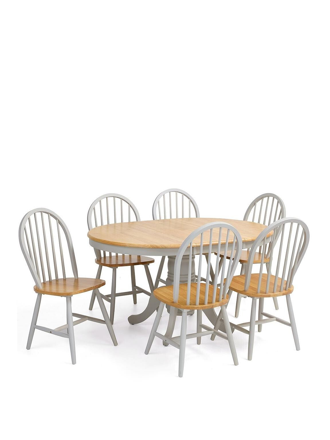 New Rubberwood Top Kentucky 100 - 130 cm Extending with 6 Chairs Grey & Oak