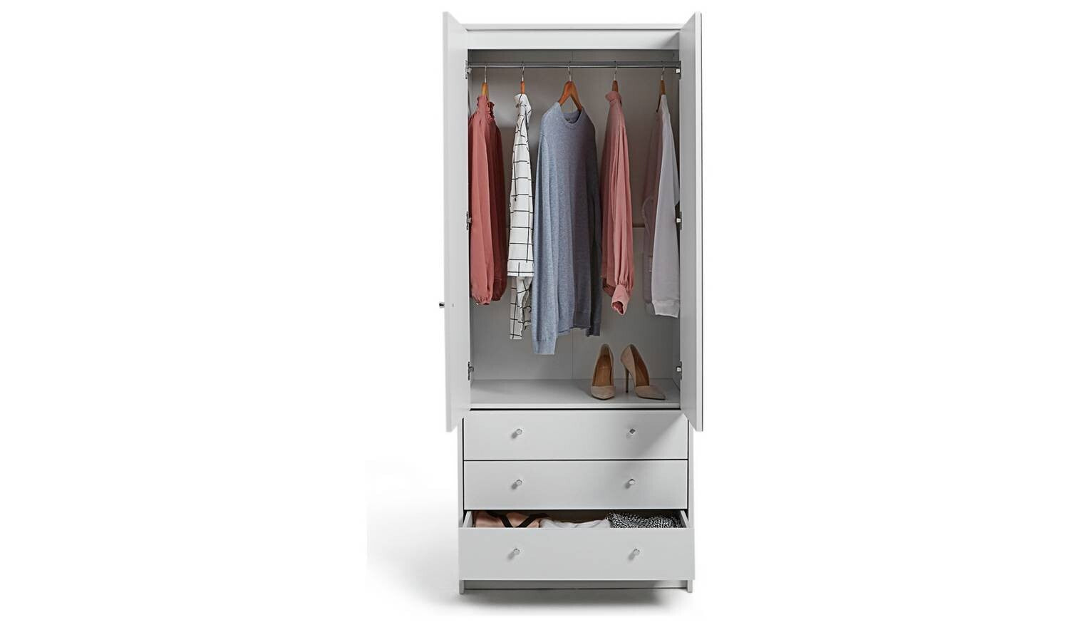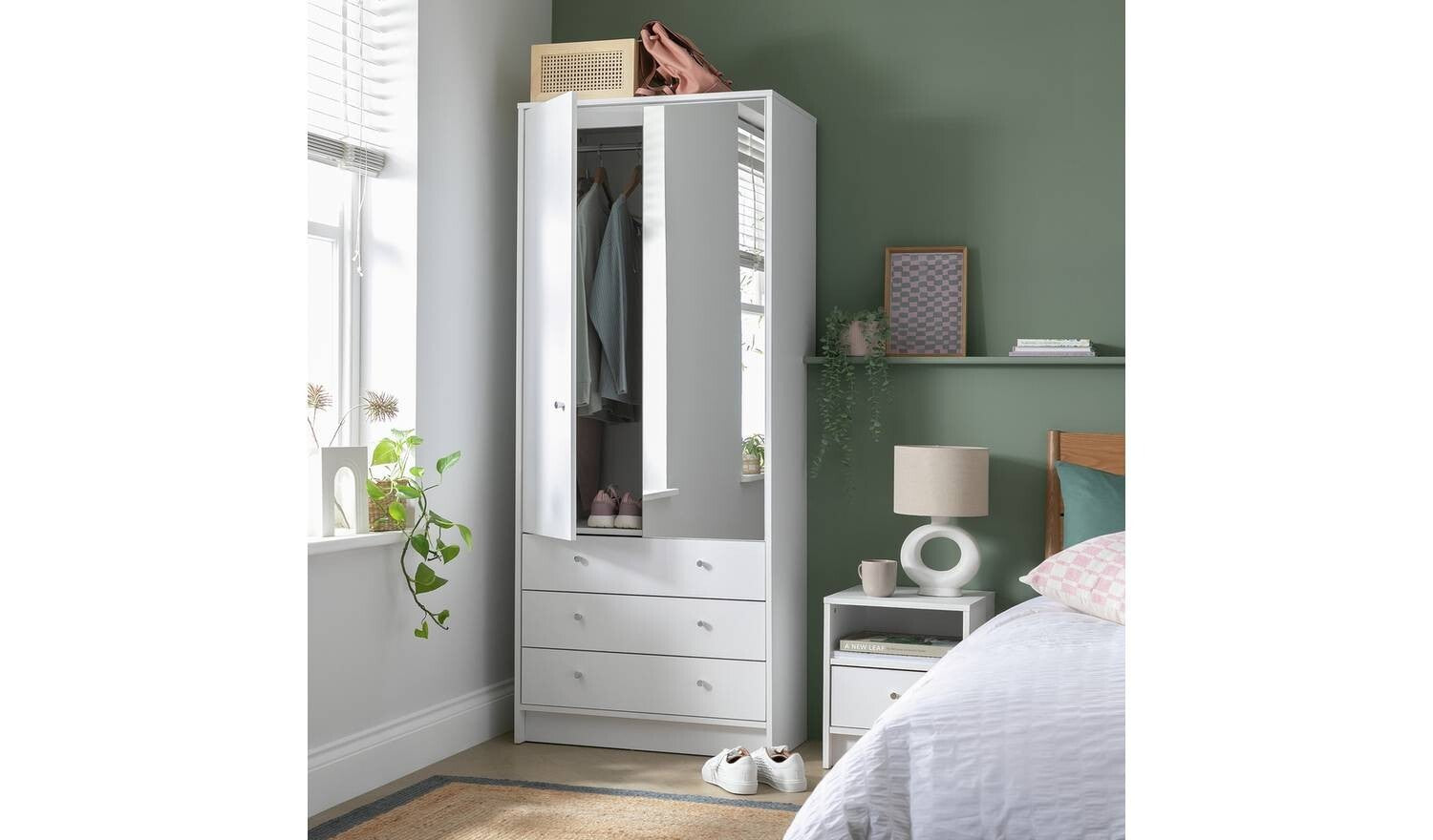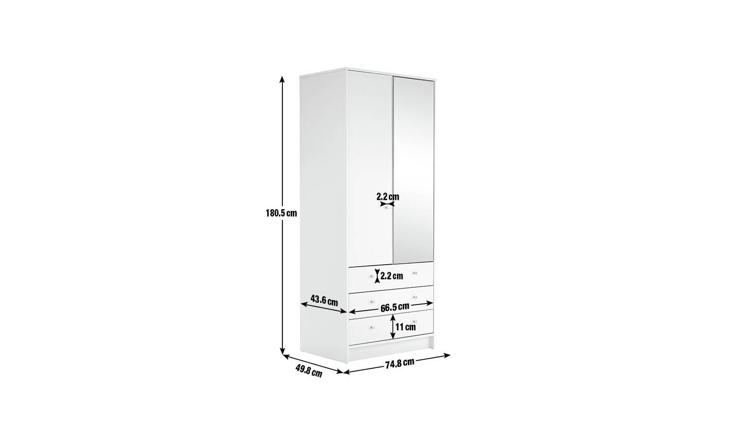 Malibu 2 Door 3 Drawer Mirror Wardrobe White Elegant and Spacious Storage
