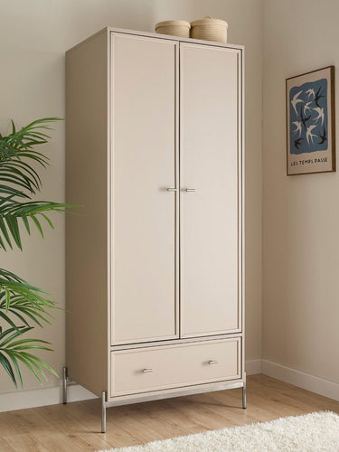 Serena 2 Door 1 Drawer Wardrobe Taupe Hanging Rail Storage Cabinet UK